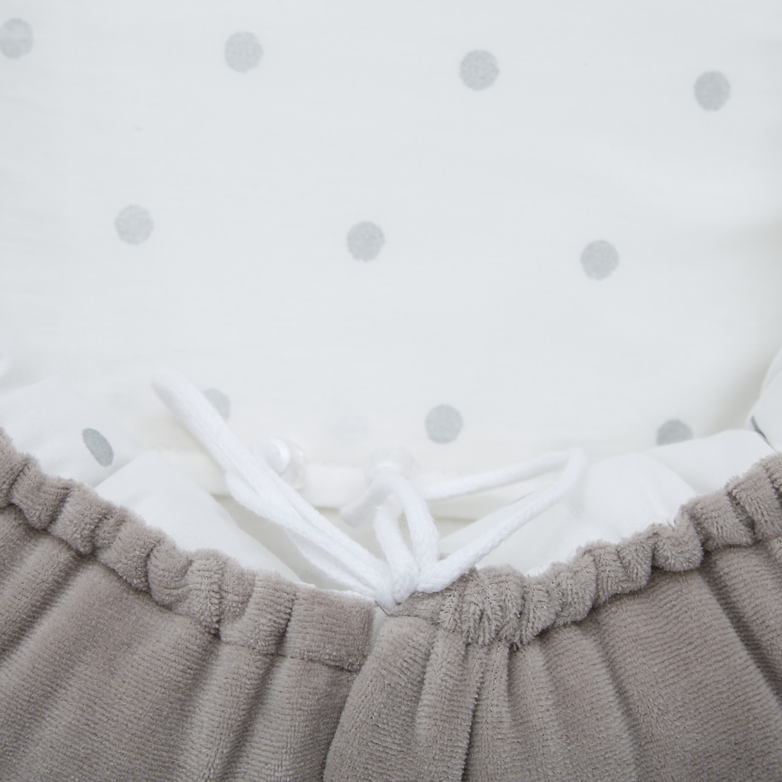 Обшивка выполнена из нежного хлопкового велюра, середина – из высококачественного 100% хлопка, что обеспечивает дышащие свойства и приятные ощущения для нежной кожи ребенка.