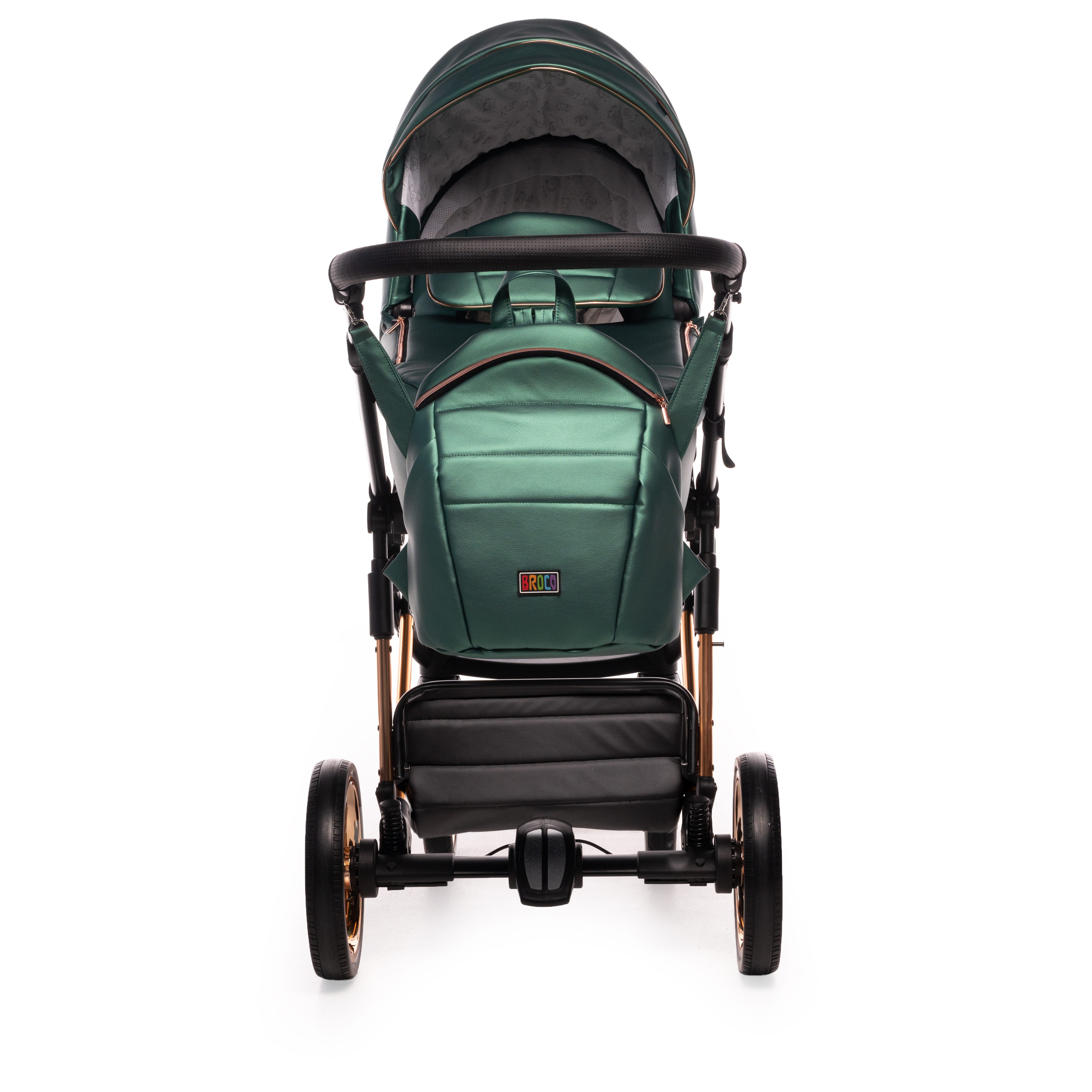 Люлька полностью обшита эко-кожей, пластиковая и ударопрочная, внутренний текстиль украшен интересным принтом. Прогулочный блок просторный и комфортный, с регулируемой спинкой и подножкой, чтобы ребенок мог спать во время прогулки. Вкладыш в прогулочном варианте выполнен из ткани Minky. Дополнительную безопасность малыша обеспечивают 5-ти точечные ремни безопасности.