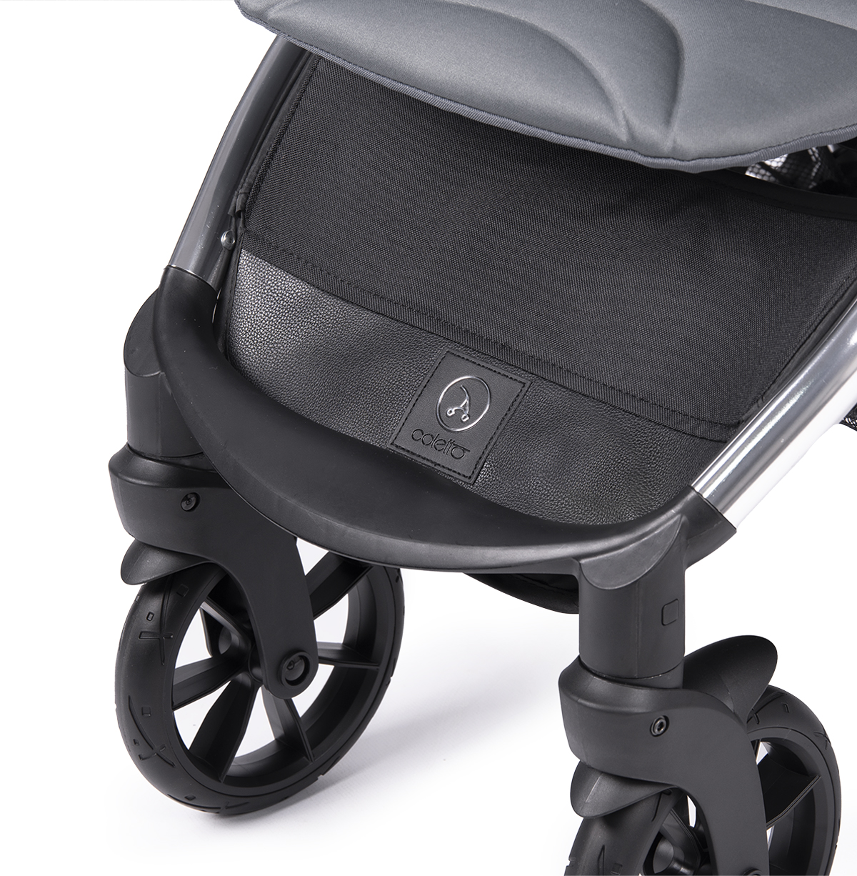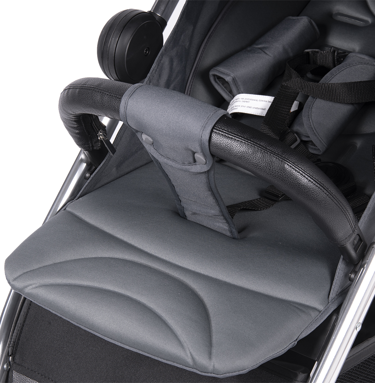 ✔ Безопасность - 5-точечные ремни, съемный бампер из экокожи и надежный центральный тормоз.