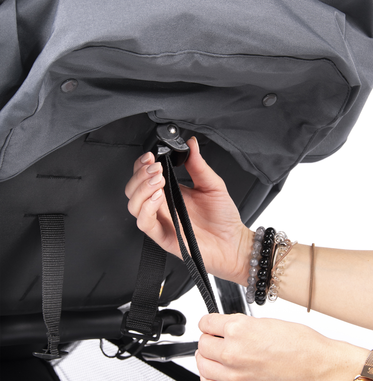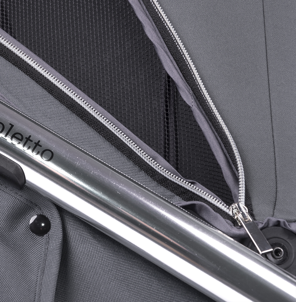 ✔ Защита от непогоды - просторный навес с дополнительным расширением на молнии, дождевик и покрывало для ног в комплекте.
