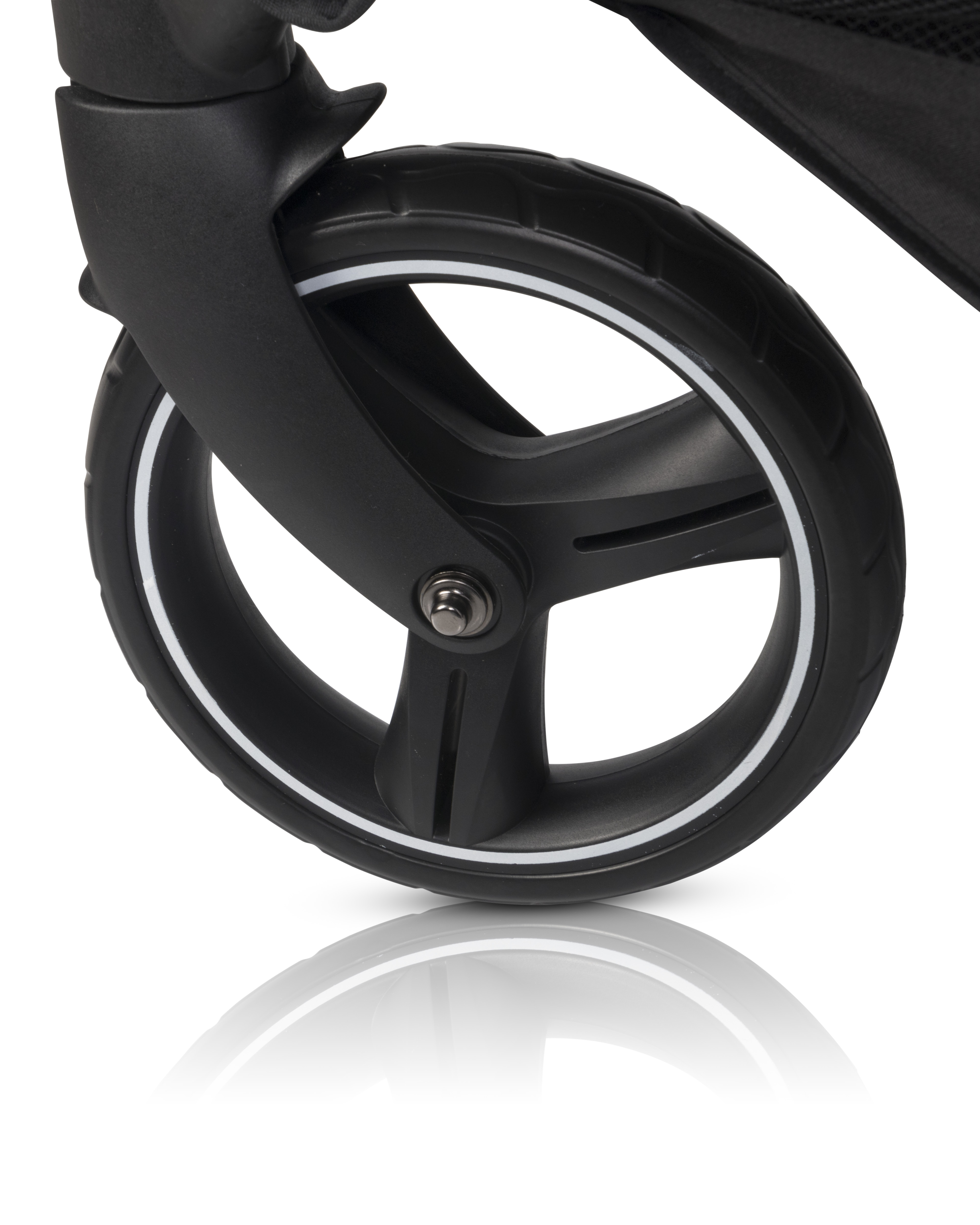 Коляска DOBLO имеет все колеса с амортизацией. Передние колеса саморегулируемые с возможностью блокировки для движения по прямой.