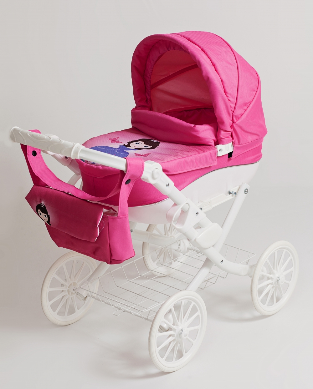 В коляску помещается кукла размером до 55 см.