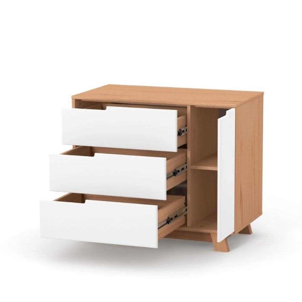 Комод оборудован четырьмя глубокими выдвижными ящиками, позволяющими удобно хранить детскую одежду, пеленки, постельное белье и средства ухода.