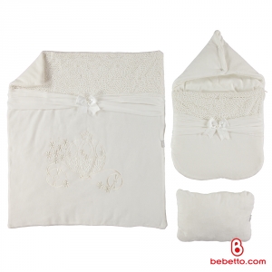 Крестильный набор для мальчика Twins с серой вышивкой 56р белый