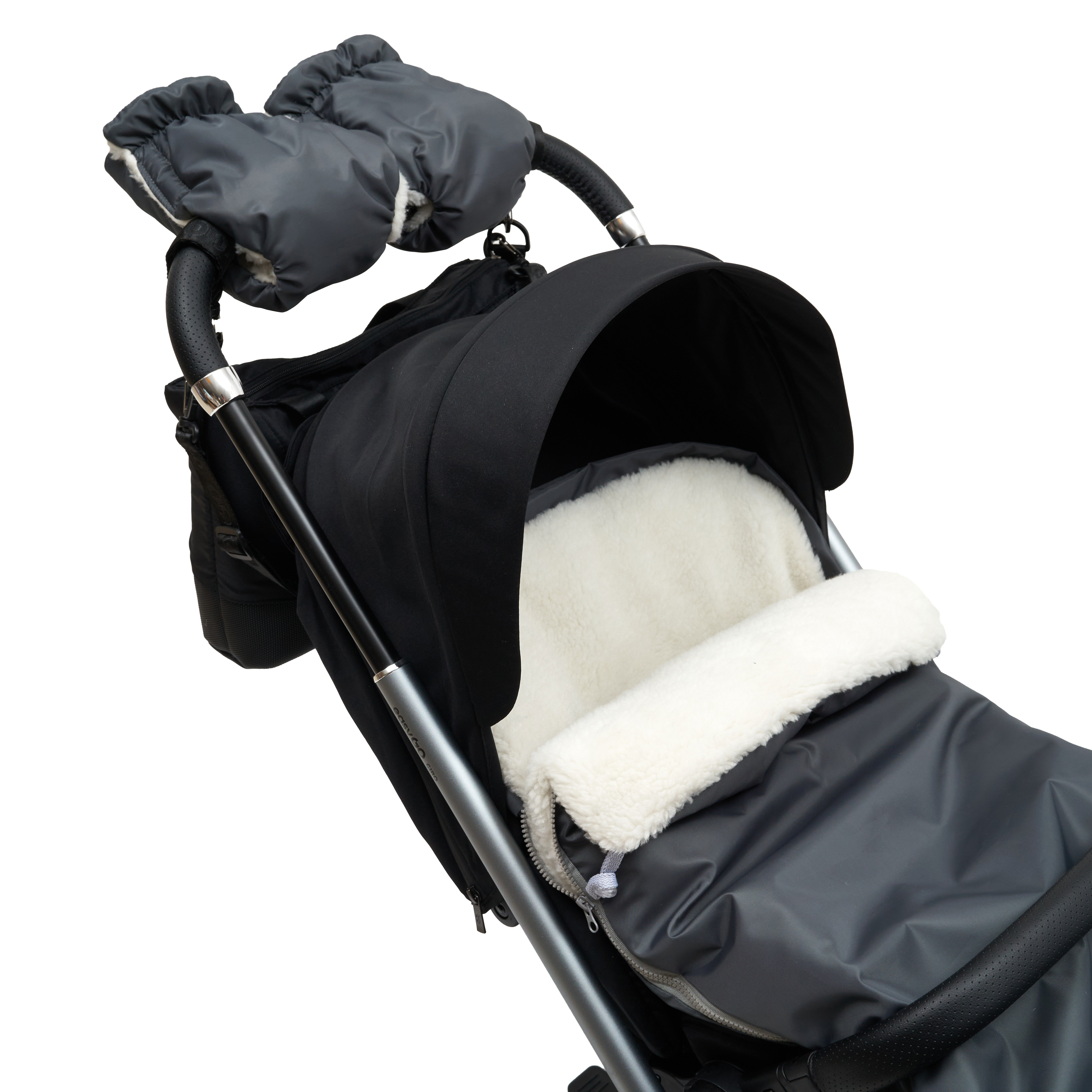 В комплекте перчатки для мамы для дополнительного комфорта в холодное время года.