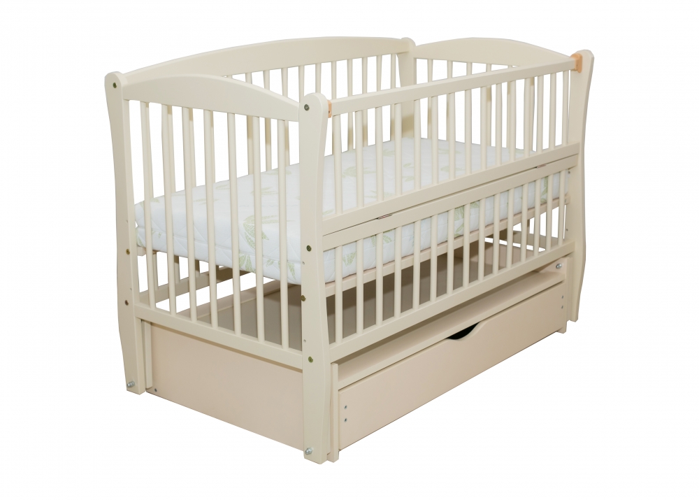 Все детали, из которых состоит кроватка, покрыты нетоксичным лаком, который не вызывает аллергии. Как и другие детские кроватки комплектуется выдвижным ящиком для белья или детских игрушек.