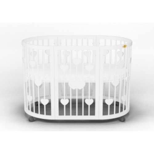 Невероятная овальная кроватка - SMART BED с сердечками совмещает 11 предметов мебели в 1 упаковке! Эта кроватка - мечта романтика! Всё в ней прекрасно: округлый контур, декоративные сердечки по всему периметру кроватки, множество трансформаций, негромоздкость и практичность. SMART BED с сердечками - настоящая находка для мамы, которая любит всё красивое и для папы, который ценит практичность и долговечность.