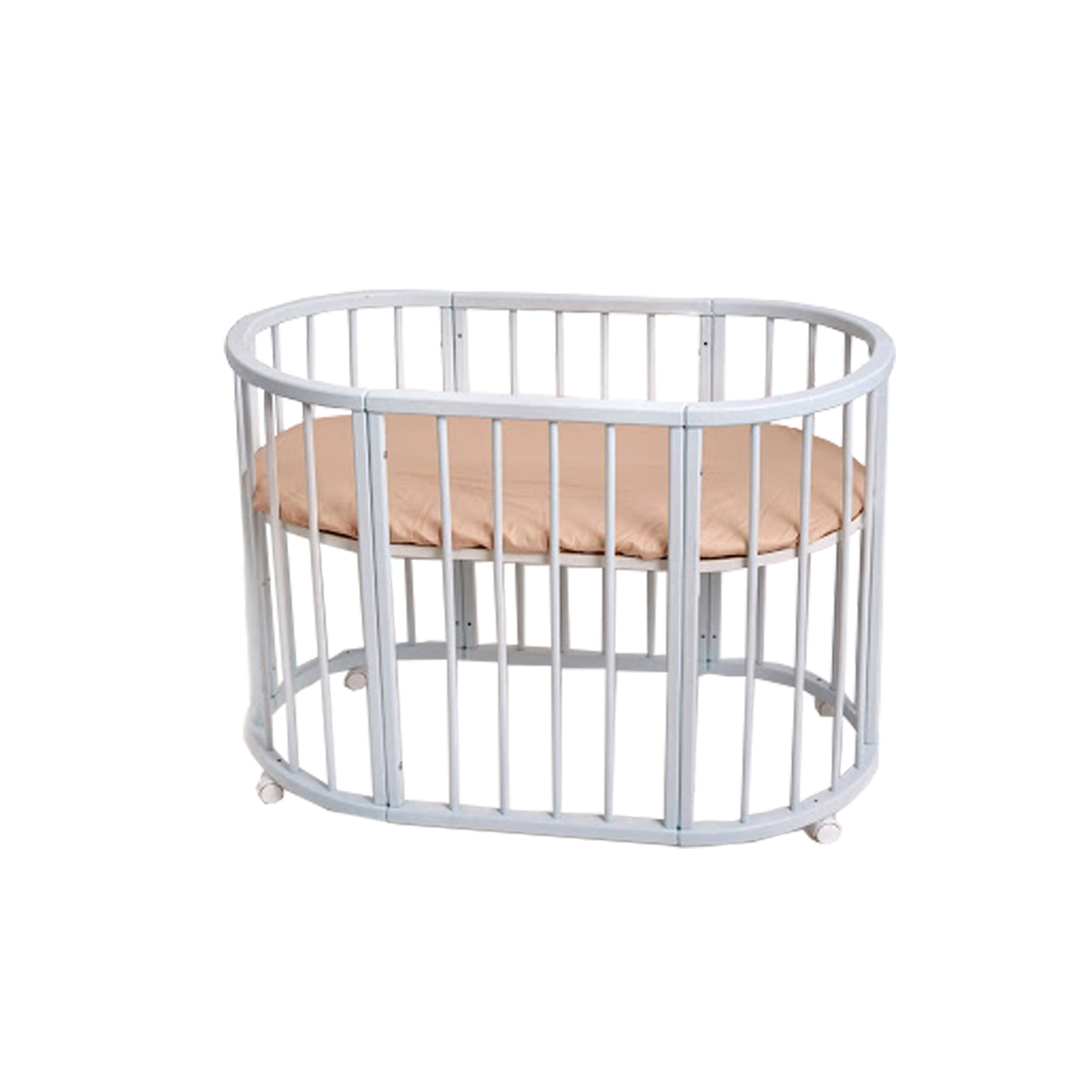 Овальная детская кроватка-трансформер Twins Cozy растет вместе с вашим малышом. Изготовлена из натуральной древесины и окрашена сертифицированными красками на водной основе, которые отвечают всем стандартам качества. Существует возможность зафиксировать подматрасник на трех уровнях.