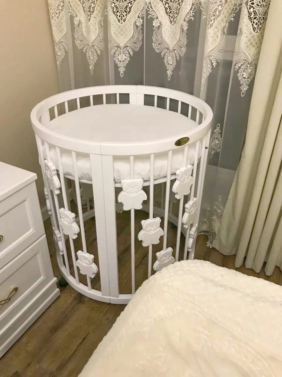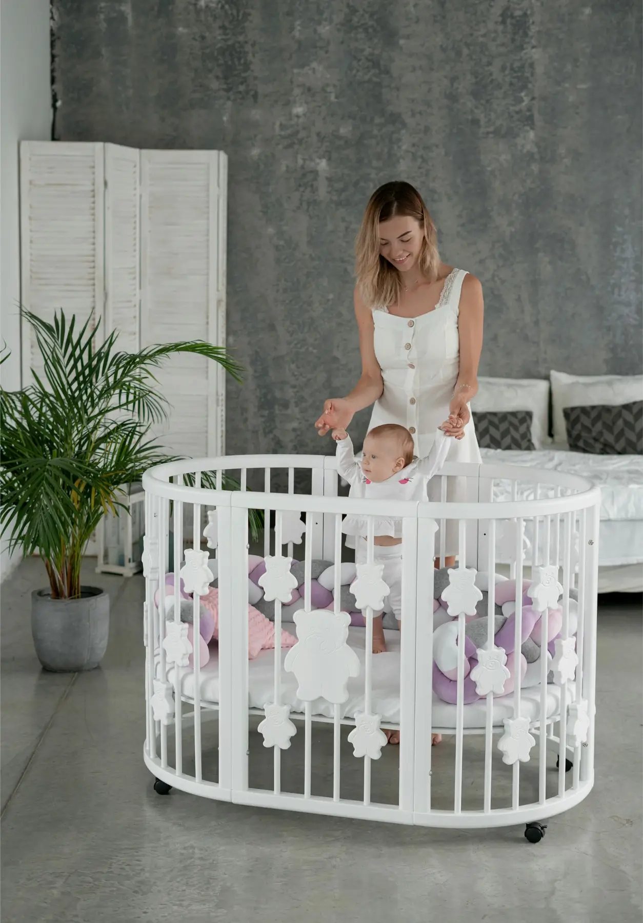 Овальная форма кроватки положительно влияет на эмоциональное состояние ребенка и обеспечивает малышу чувство безопасности и уюта.