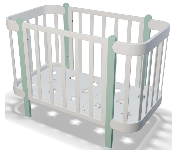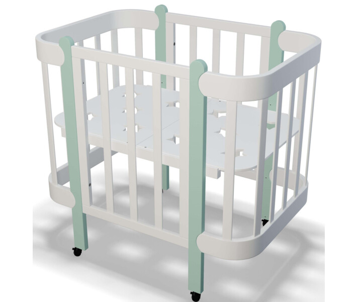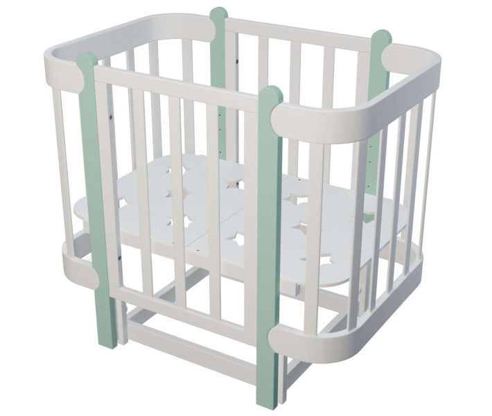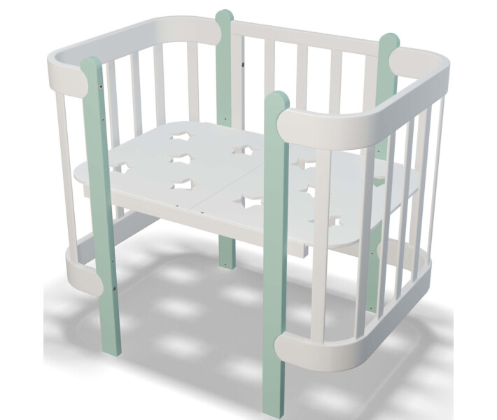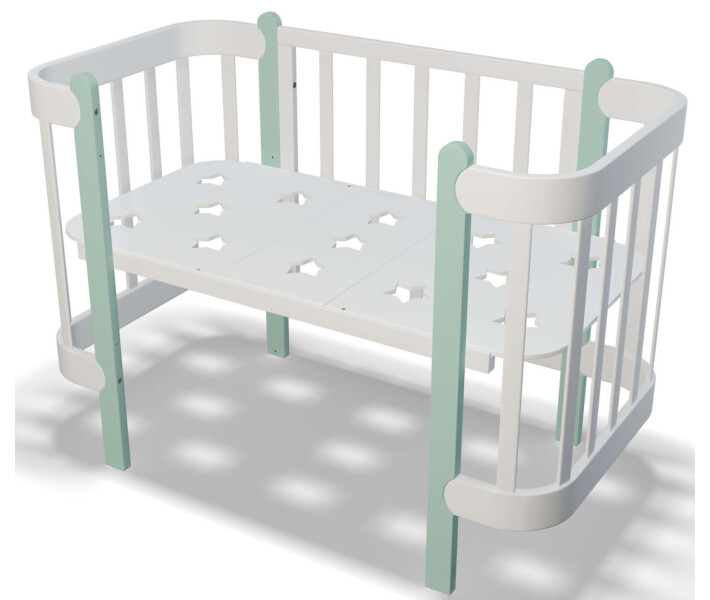 Купить Кроватка для новорожденных девочек "Ника" трансформер 60/120 белая с мятным вы можете, оформив заказ у нас на сайте