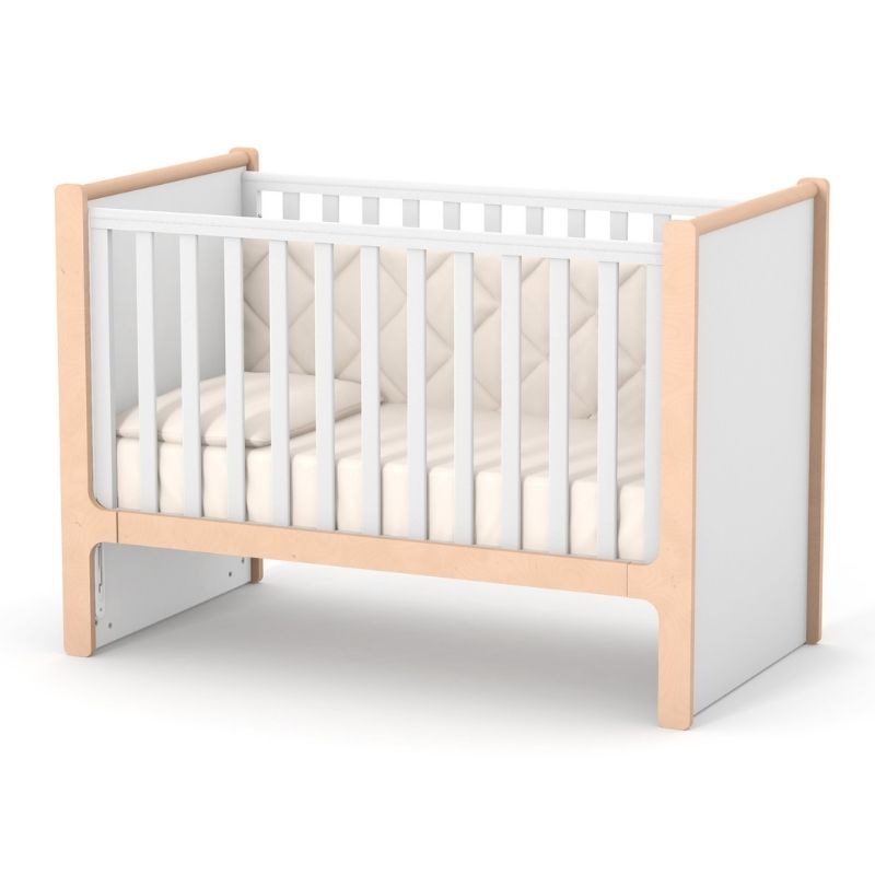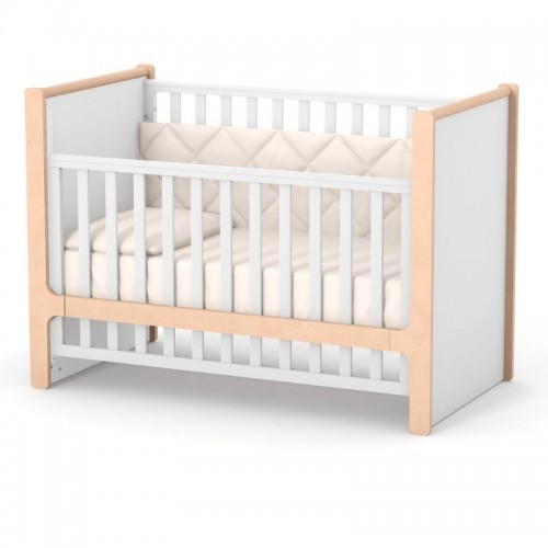 Не нужно переживать, что ребенок пострадает, если попробует кроватку на вкус. На верхней части боковин есть защитная накладка-грызунок, которая защищает десна ребенка. А все краски и лаки сертифицированные, на водной основе с добавлением ионов серебра. Вся фурнитура от немецкого производителя Hafele, прочная и долговечная, не пострадает при длительном использовании. Также можно купить маятниковый механизм для укачивания с ящиком, что устанавливается на ножки, на нашем сайте.
