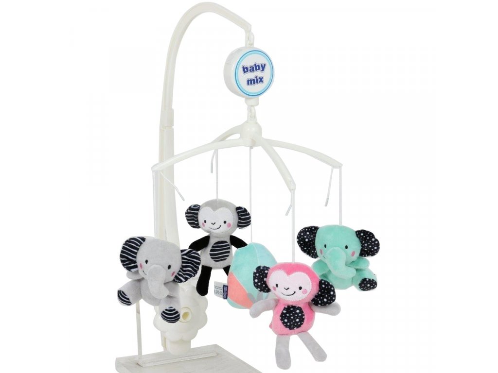 Карусель с плюшевыми фигурками над кроваткой способствует улучшению координации движений ребенка.