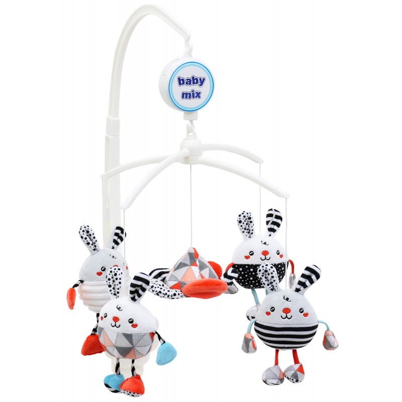 Один из лучших вариантов первой игрушки для малыша - мобиль с плюшевыми игрушками. Милые мягкие зайчики создают позитивную атмосферу для ребенка, успокаивают и развлекают. Игрушки съемные, их можно использовать отдельно, брать с собой на прогулку или в путешествие. Не содержит острых элементов, поэтому полностью безопасны для жизни и здоровья ребенка. Специальный блок управления проигрывает одну мелодию и прокручивает игрушки по кругу, что создает хорошие условия для засыпания младенца. Благодаря подвижным элементам малыш учится лучше координировать внимание и зрение на предметах.