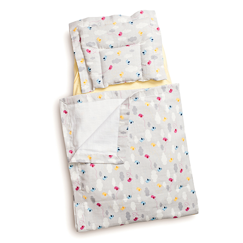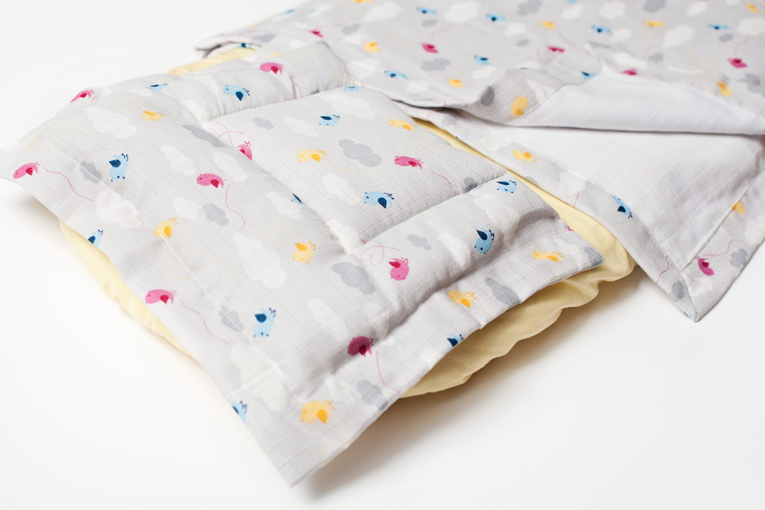 Набор в коляску Twins Birds изготовлен из муслина и содержит в себе 3 элемента: плед, подушку и наматрасник на резинке для матрасика в коляске). Размер элементов универсальный и подойдет для любой стандартной коляски. Удобная подушка позволит малышу комфортно чувствовать себя во время прогулки, крепко спать на свежем воздухе.