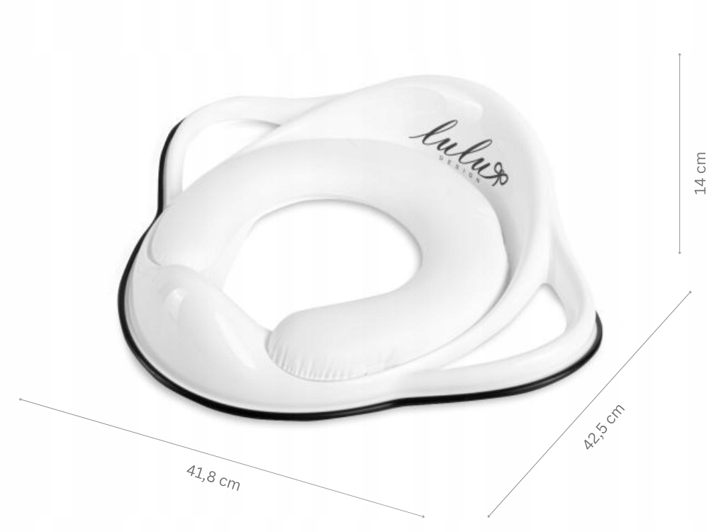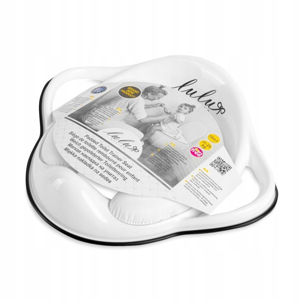 Мягкий чехол на сиденье унитаза Lulu белого/черного цвета, созданный специально для малышей, сочетает в себе привлекательный внешний вид и функциональность. Изготовлен из эластомера, имеет гладкие края и противоскользящие свойства, что обеспечивает большую безопасность и комфорт пользования унитазом.