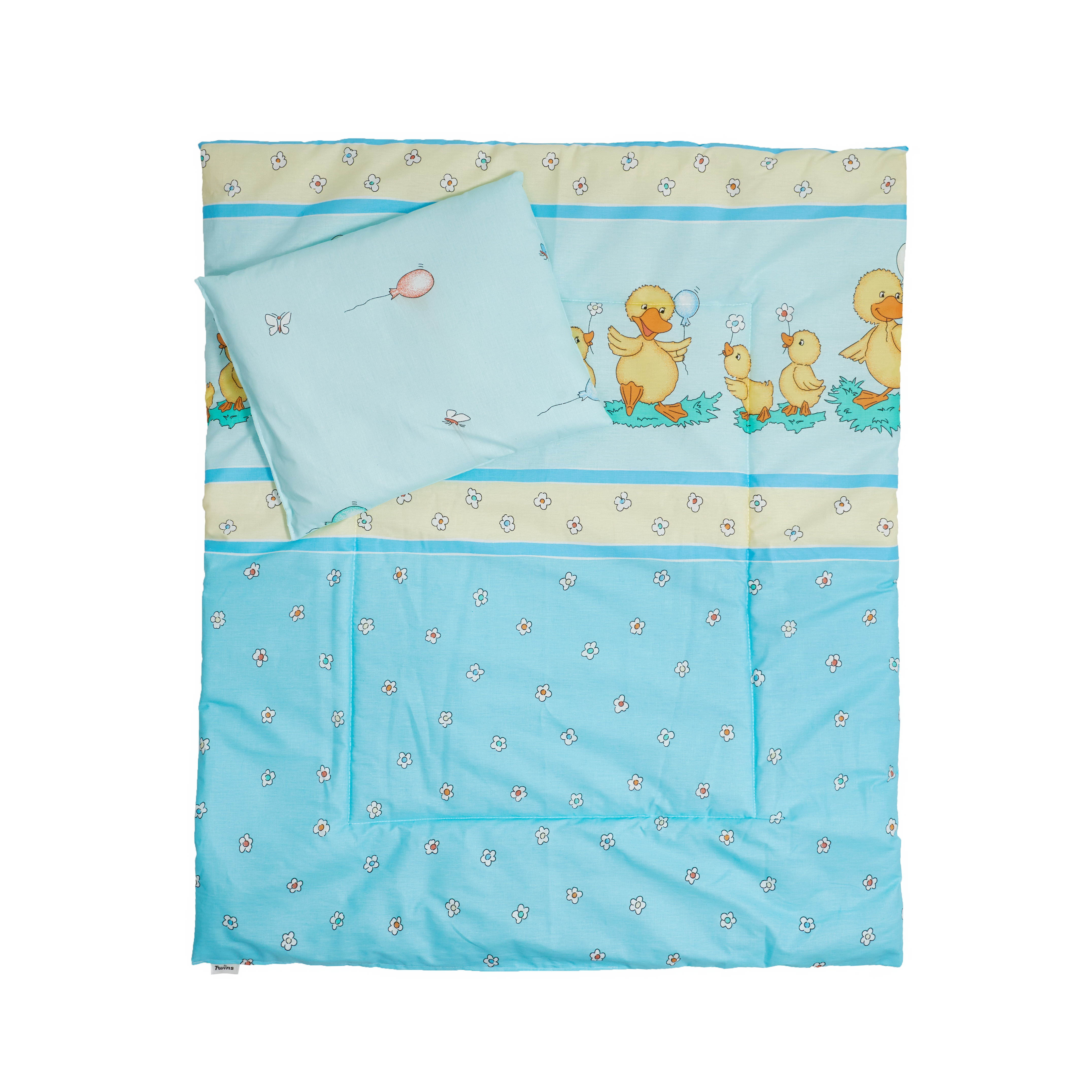 Одеяло размером 90×75 см и подушка 38×30 см созданы так, чтобы их было удобно использовать в детской кроватке, главное, в электрической детской люльке.
