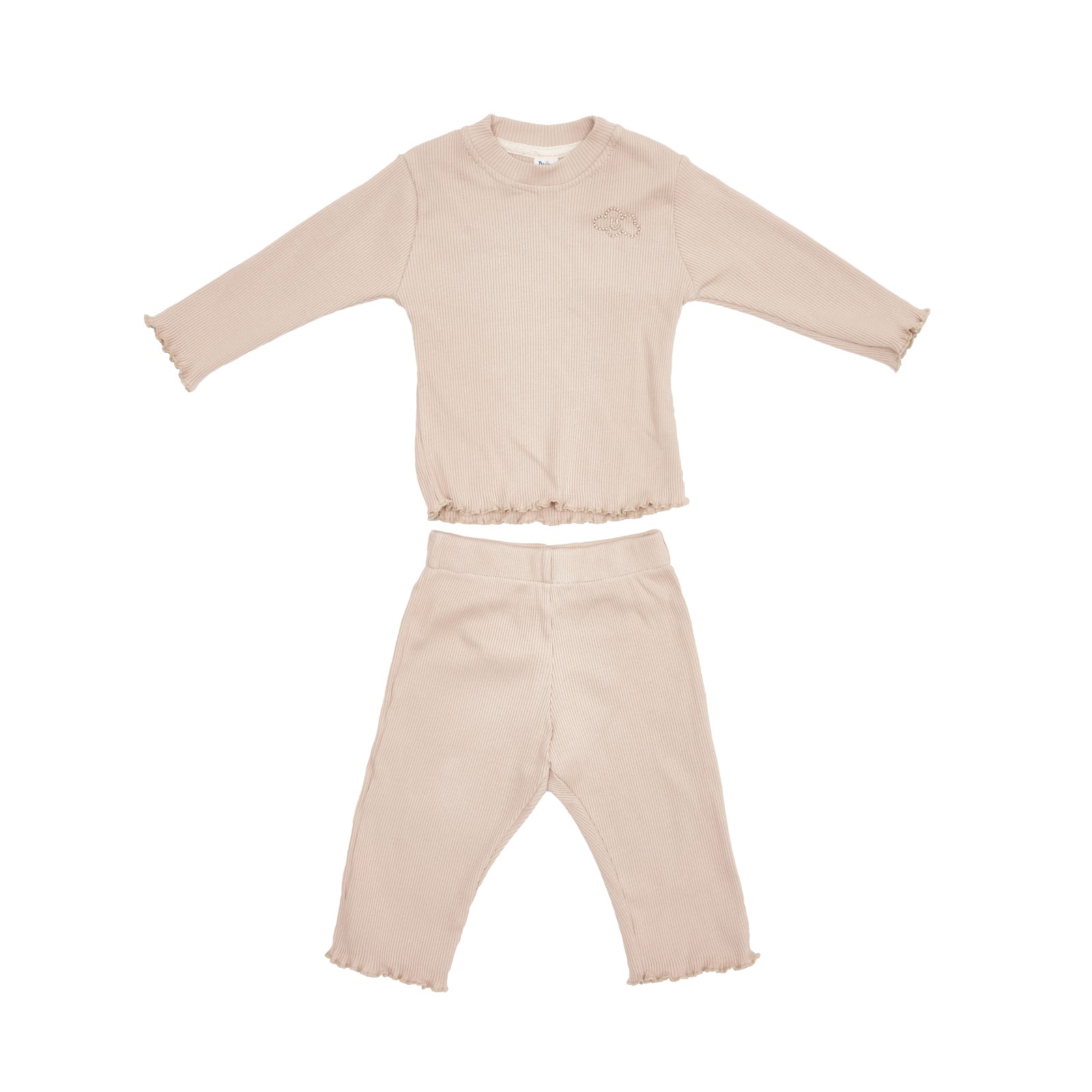 Пижама состоит из лонгслива и штанов, украшена вышивкой в виде облачка на груди.
