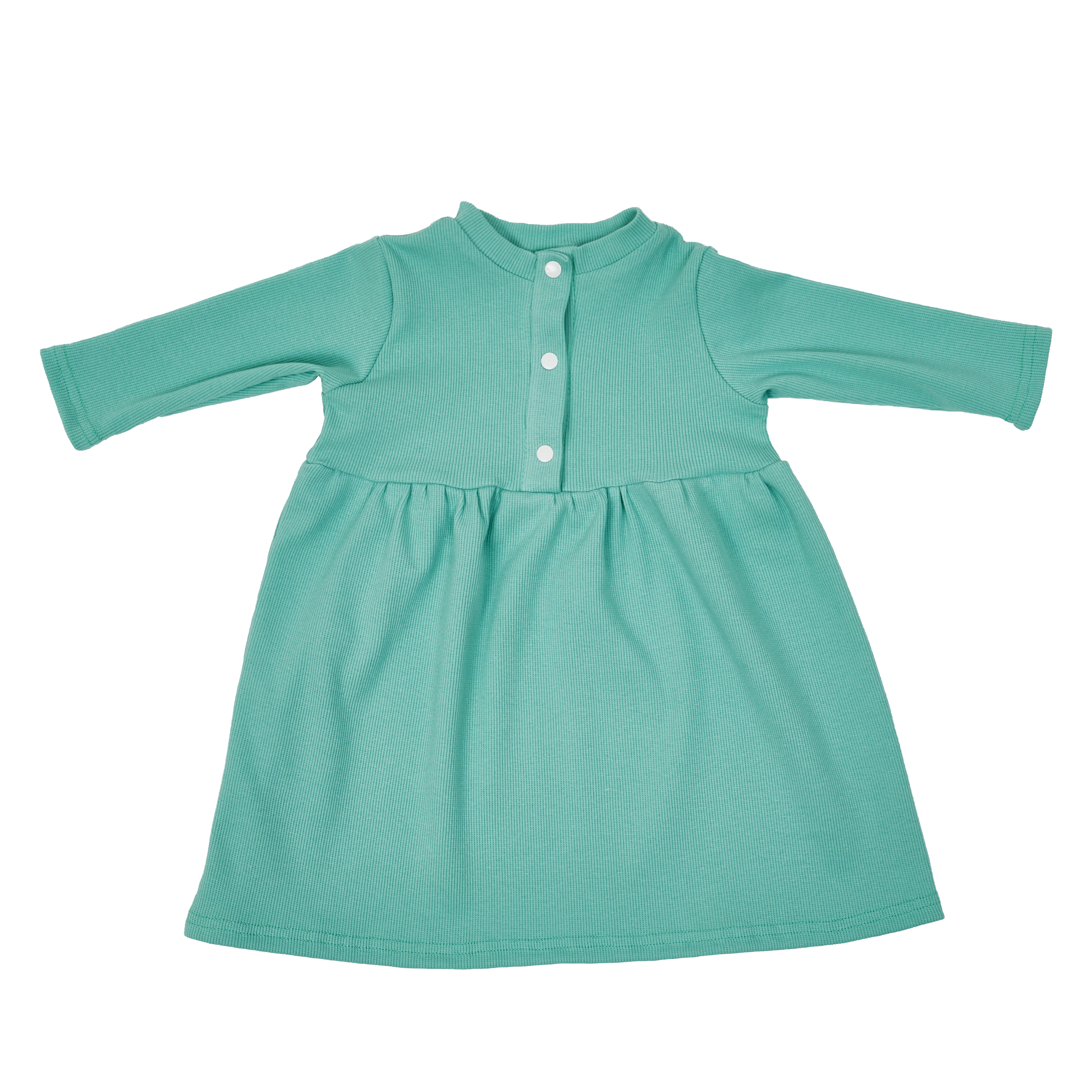 Платье свободного кроя, немного расширено донизу. Линия талии завышена, средняя длина. Модель выполнена из кашкорса. Застёгивается кнопками.