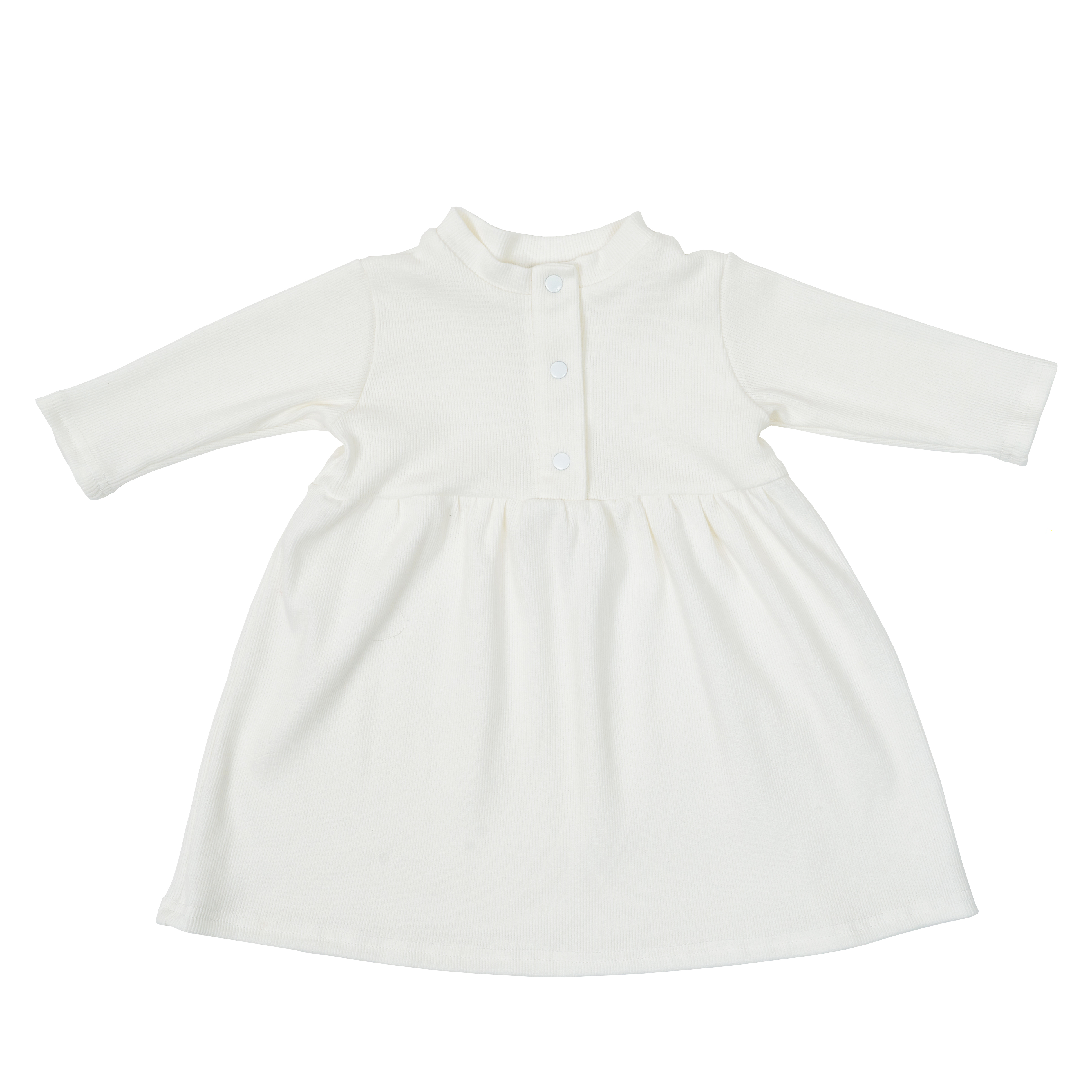 Платье свободного кроя, немного расширено донизу. Линия талии завышена, средняя длина. Модель выполнена из кашкорса. Застёгивается кнопками.