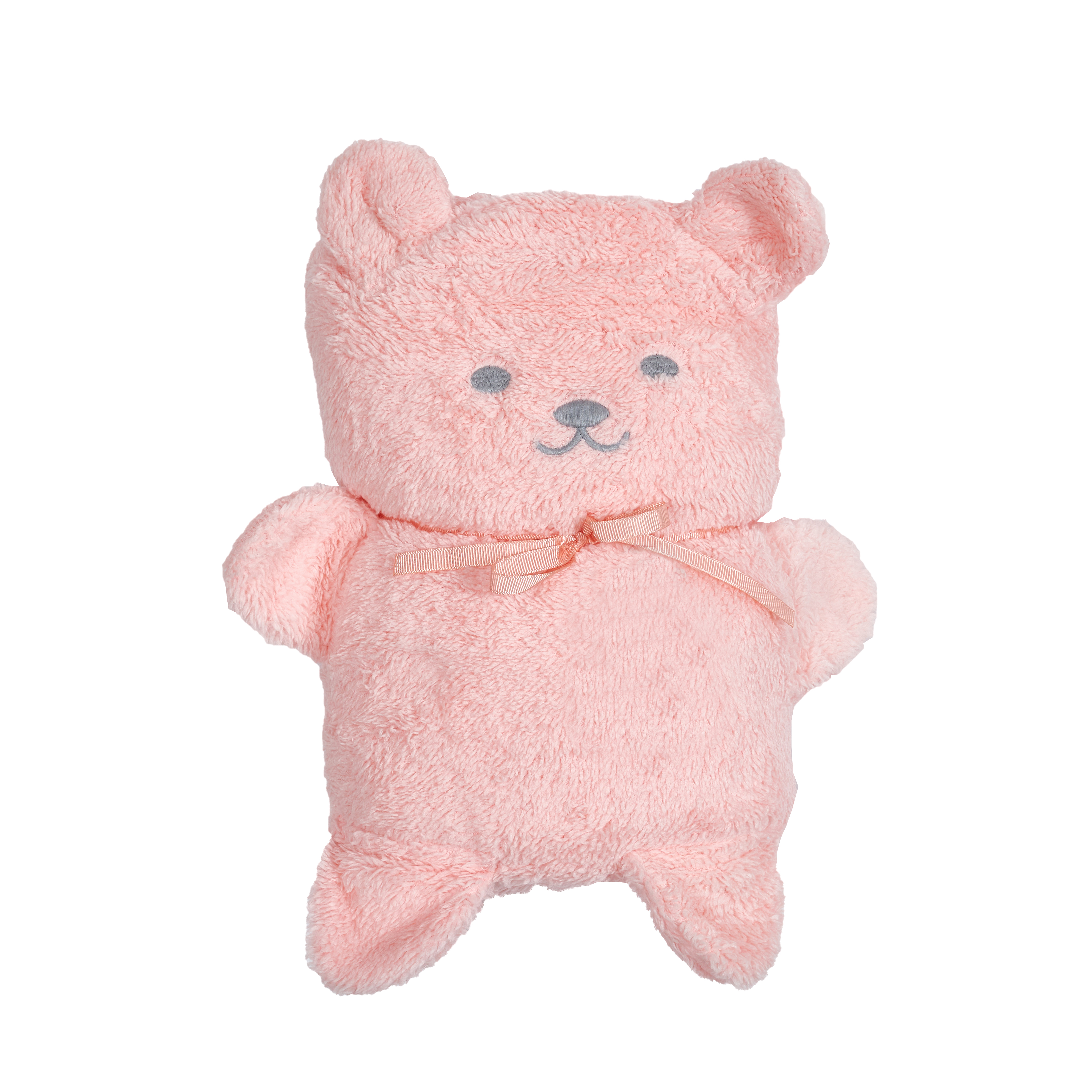 оригинальный дизайн – плед украшен вышивкой в виде мишки и складывается в форме игрушки, что непременно понравится ребенку.