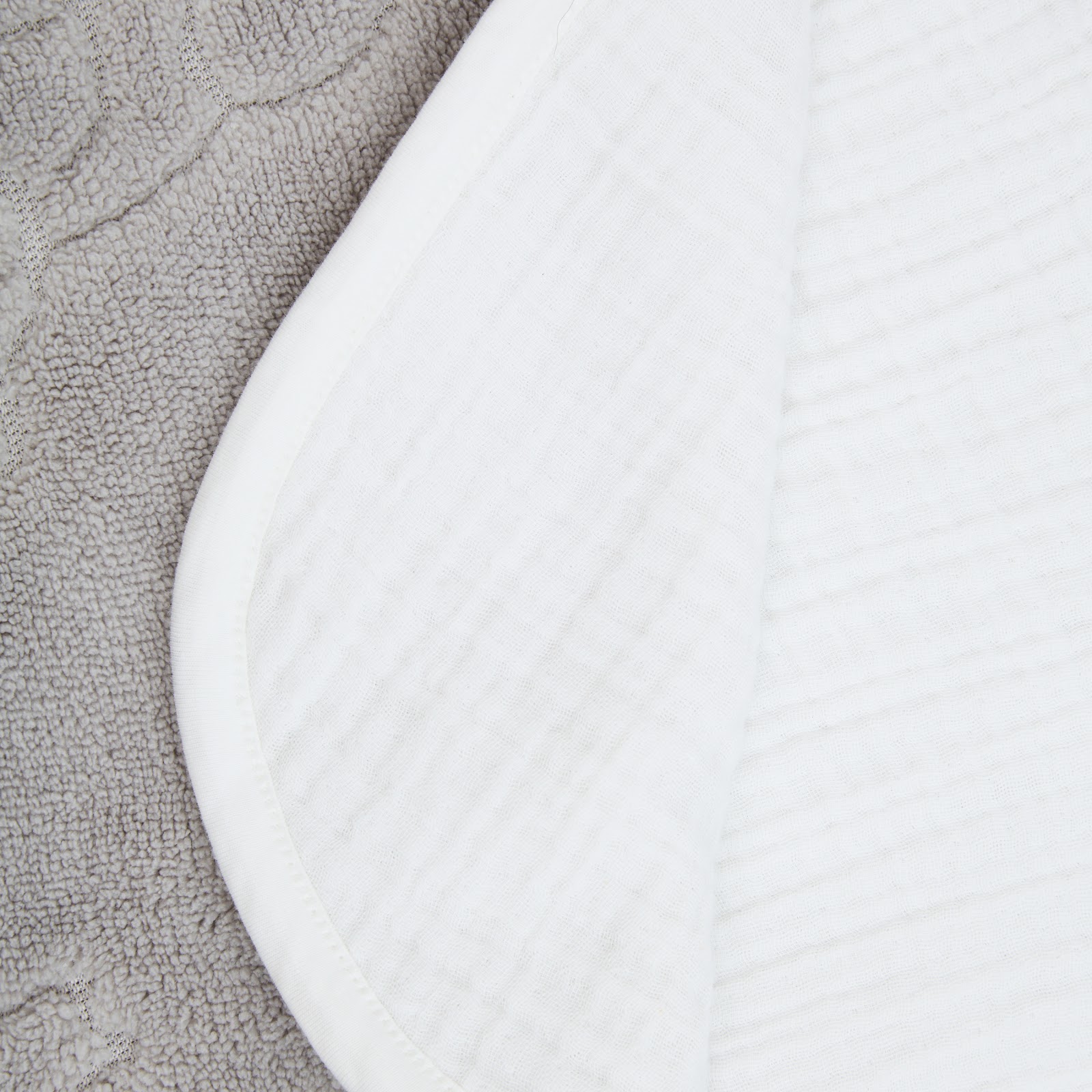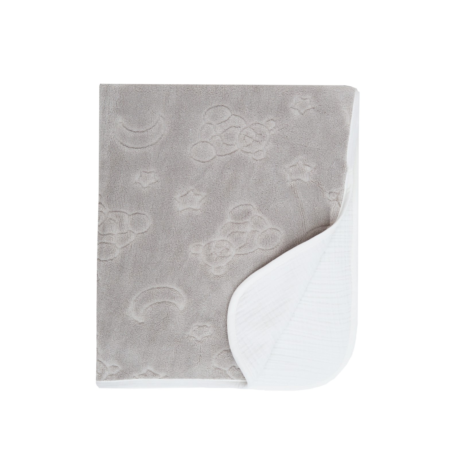 Верхняя сторона пледа выполнена из мягкого велюра с милыми мишками, а внутренняя – из натурального муслина, который отлично пропускает воздух и дарит приятные тактильные ощущения.