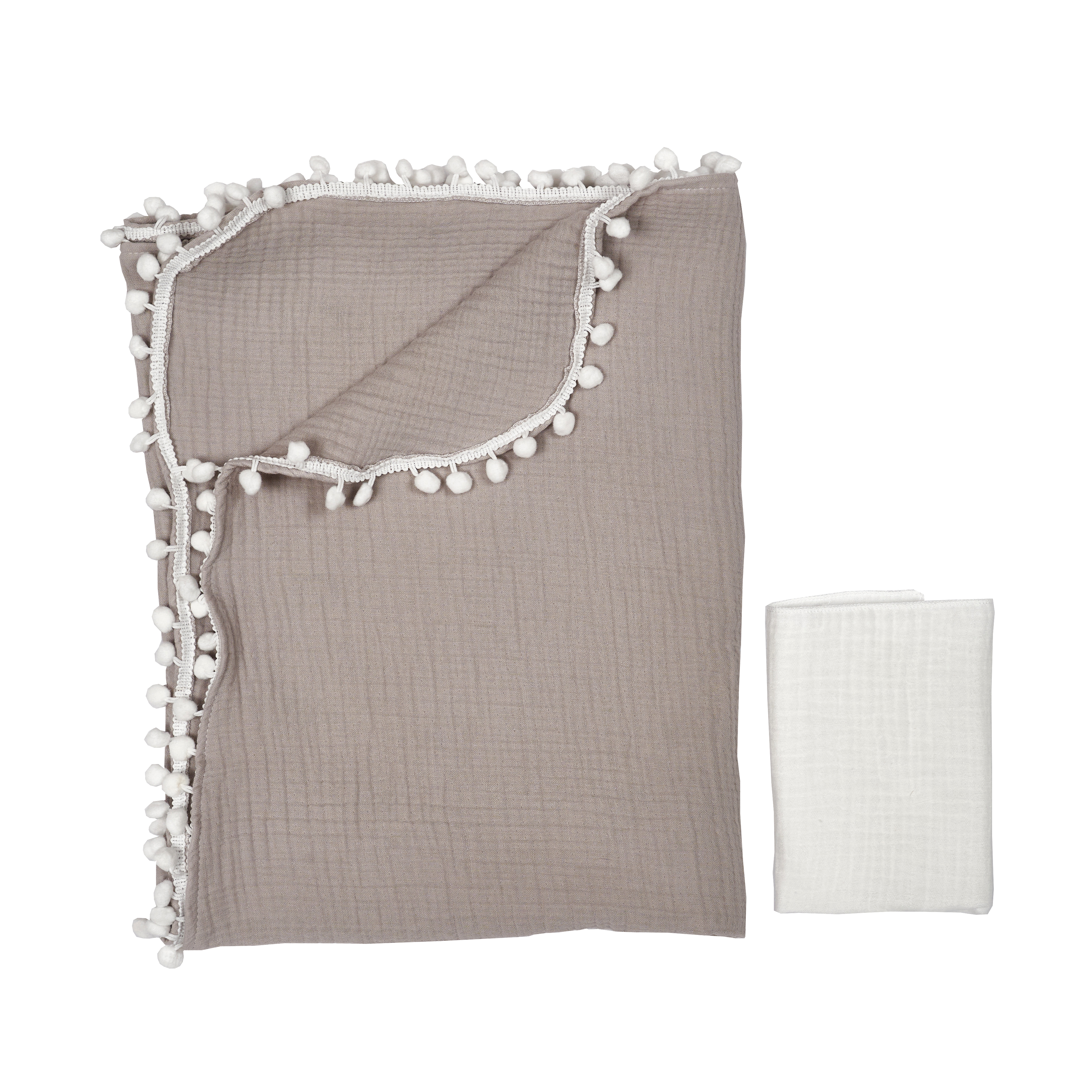 Муслиновый плед Twins с помпонами – это сочетание нежности, стиля и заботы о вашем малыше каждый день.