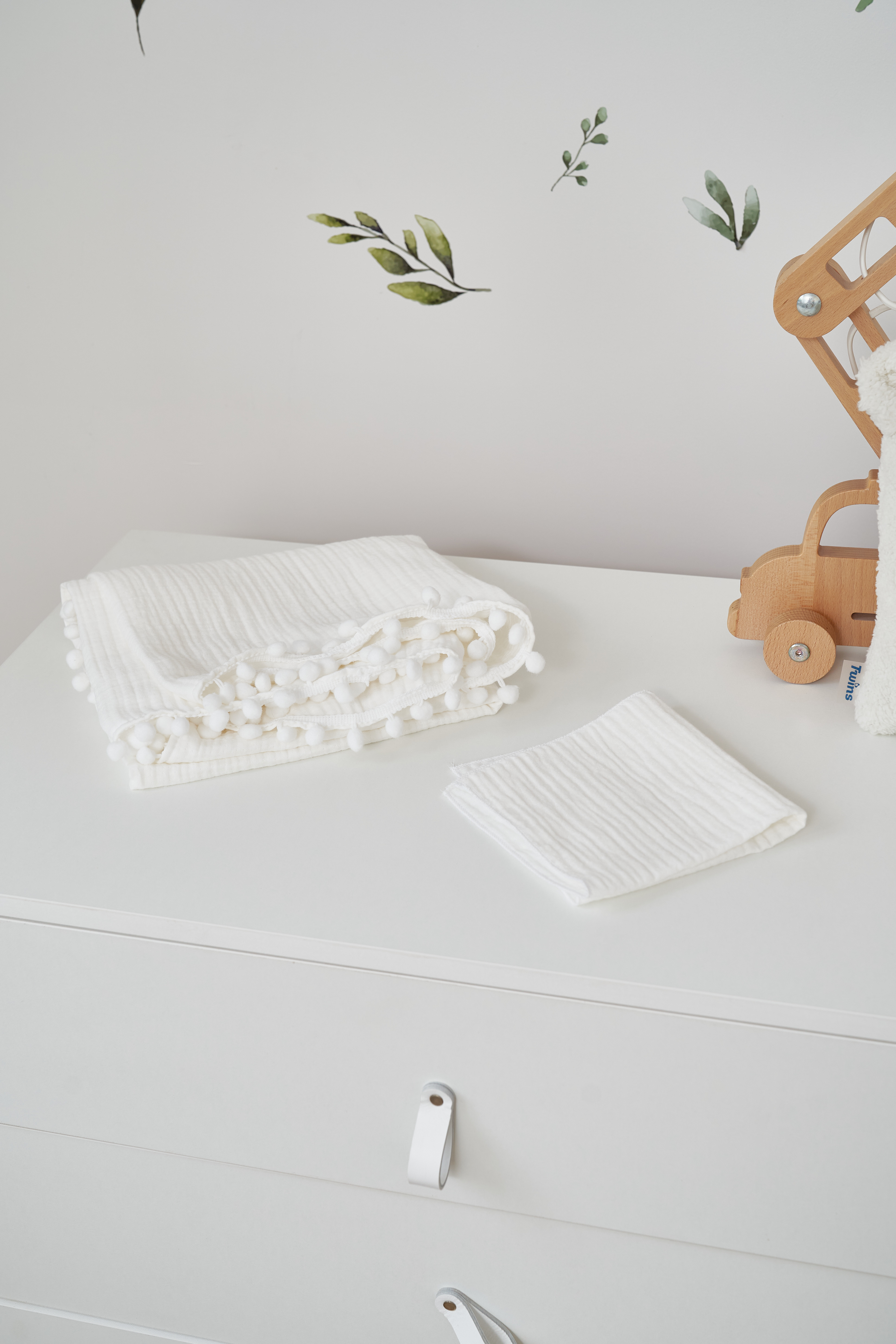 Муслиновый плед Twins с помпонами – это сочетание нежности, стиля и заботы о вашем малыше каждый день.