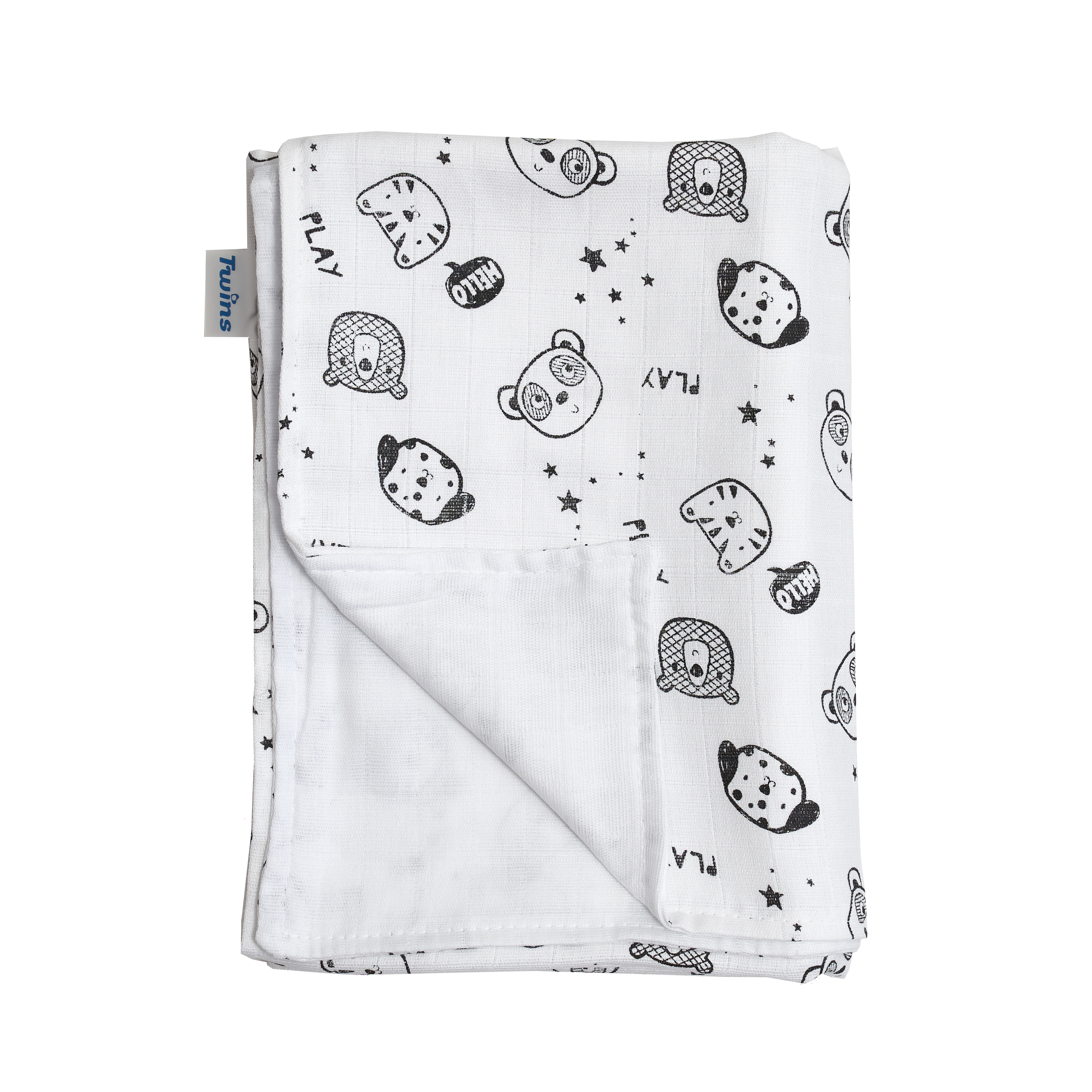 Муслиновый плед Twins создан специально для нежной кожи малыша из 100% органического дышащего хлопка.