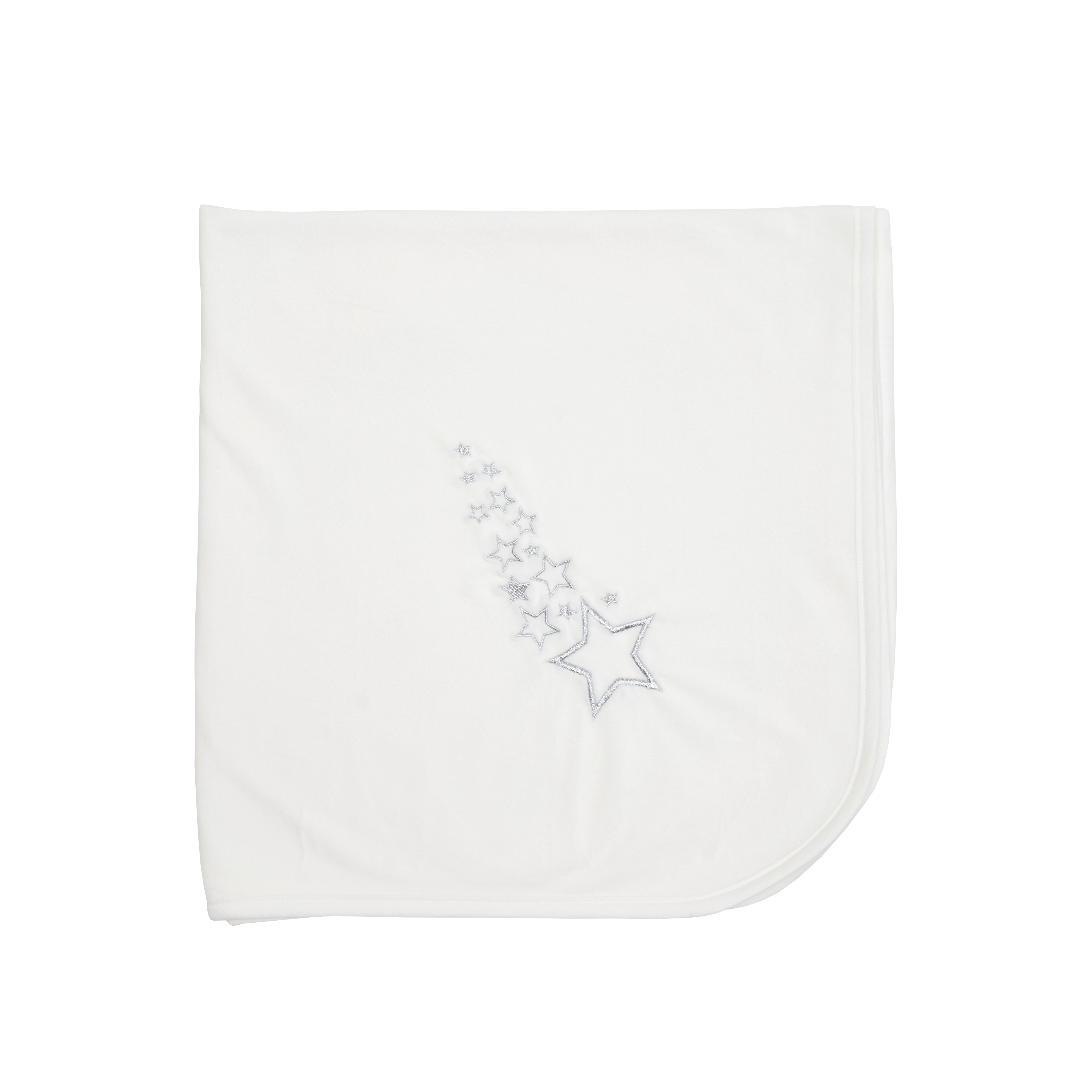 Плед украшен вышивкой в виде звездочек, что добавляет очарования.