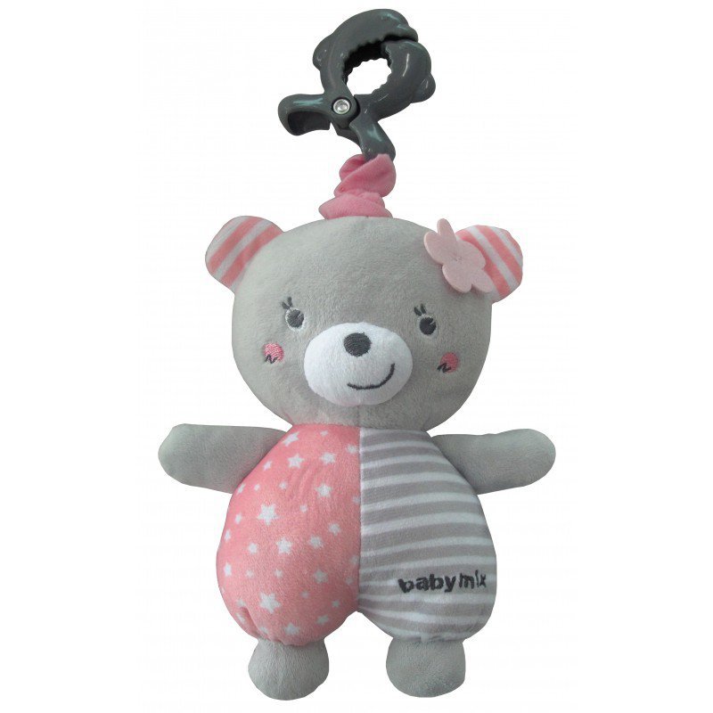 Плюшевая игрушка для путешествий Мишка приятная на ощупь, нежного цвета и всегда улыбающаяся сделает привлекательной любую прогулку или экскурсию. Удобная ручка в форме клипсы позволяет закрепить игрушку в любом месте коляски, кресла, автокресла или кроватки. Игрушка с грызунком, шелестит, а также после дерганья за шнурок играет приятная мелодия, которая успокаивает малыша, создает релаксирующую атмосферу. Подвеска Мишка - многофункциональная развивающая игрушка, ведь малыш учится координировать внимание, улучшает зрительное, слуховое и осязательное восприятие, развивает мелкую моторику рук. С подвеской Ваш малыш никогда не будет скучать, ведь она станет первым другом ребенка