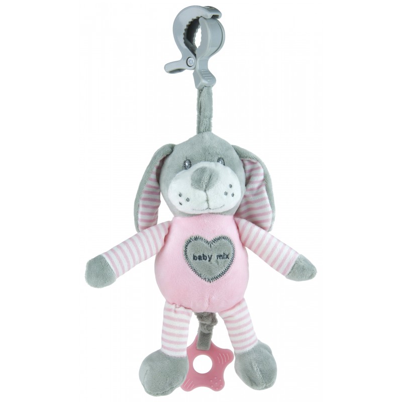 Плюшевая игрушка для путешествий Собачка приятная на ощупь, нежного цвета и всегда улыбающаяся сделает привлекательной любую прогулку или экскурсию. Удобная ручка в форме клипсы позволяет закрепить игрушку в любом месте коляски, кресла, автокресла или кроватки. Игрушка с грызунком, шелестит, а также после дерганья за шнурок играет приятная мелодия, которая успокаивает малыша, создает релаксирующую атмосферу. Подвеска Собачка - многофункциональная развивающая игрушка, ведь малыш учится координировать внимание, улучшает зрительное, слуховое и осязательное восприятие, развивает мелкую моторику рук. С подвеской Ваш малыш никогда не будет скучать, ведь она станет первым другом ребенка.