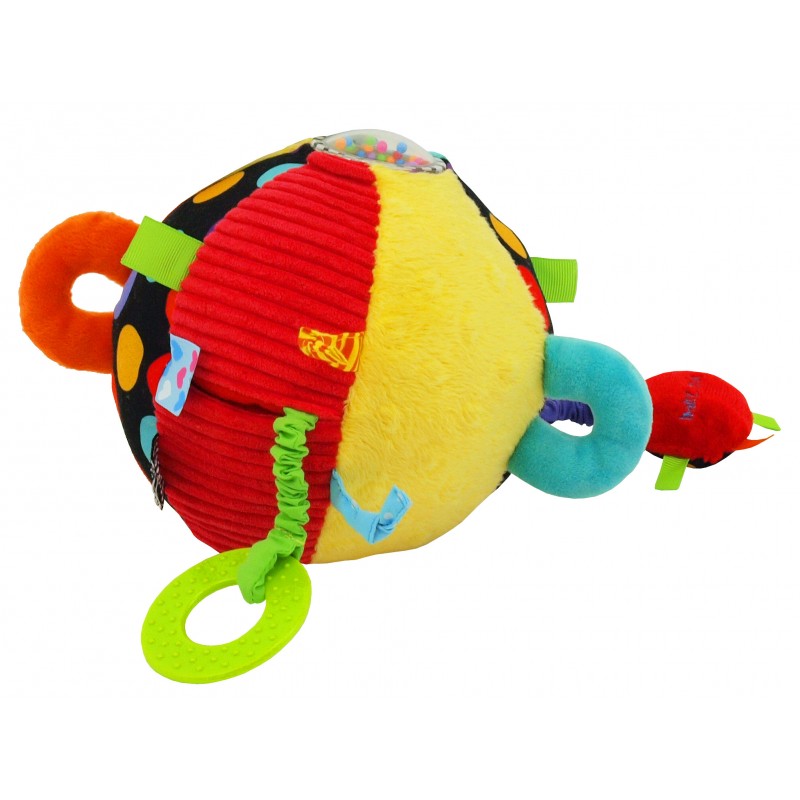 Приятный на ощупь плюшевый Мяч имеет яркий цвет, встроенное погремушку и дудку, что также стимулирует развитие органов зрения и слуха. Благодаря разнообразным текстурам, ребенок будет развивать мелкую моторbку пальчиков и осязательные навыки.