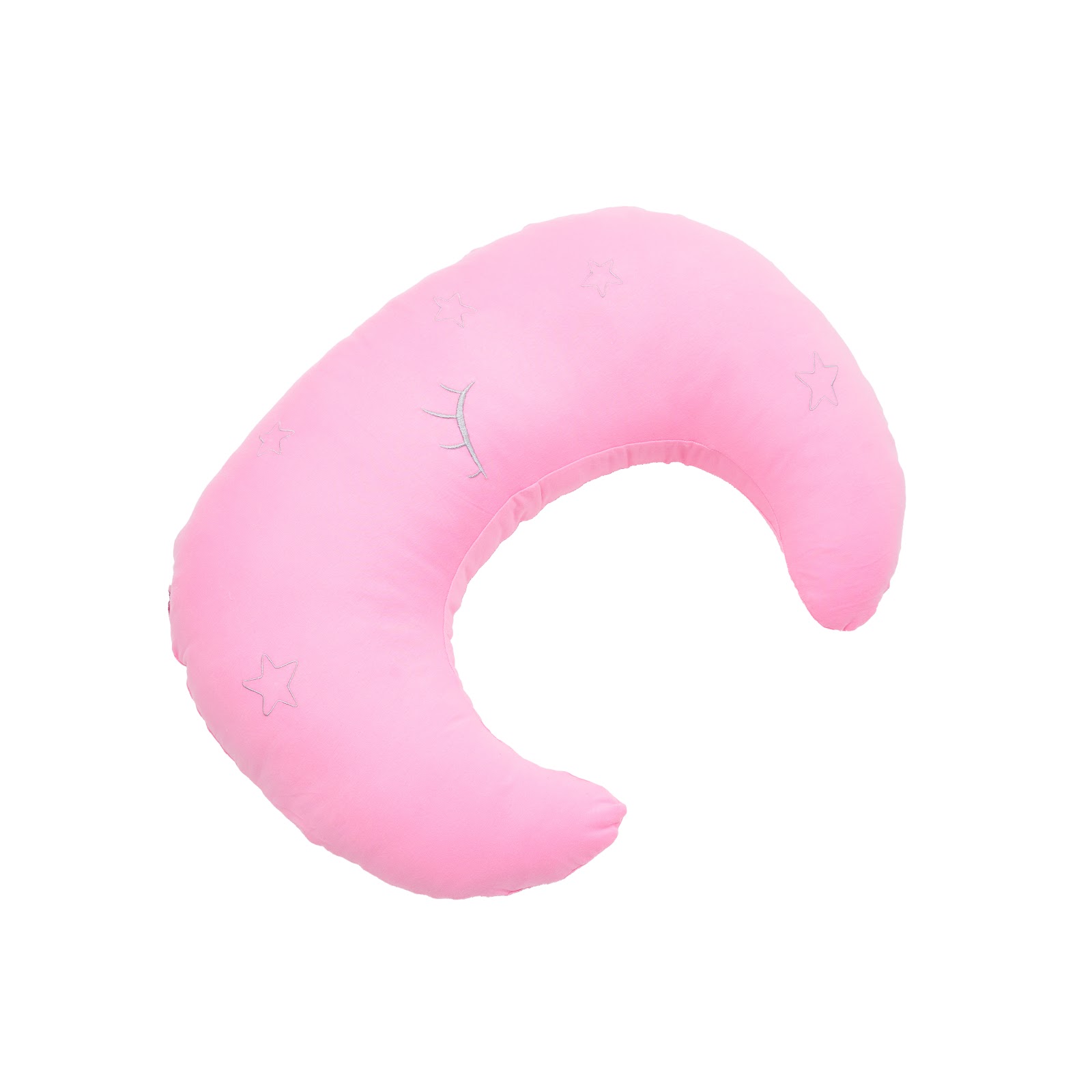 Стильный дизайн: подушка выполнена в форме луны с нежной вышивкой в виде звезд и закрытых глаз, что добавляет уюта и эстетической привлекательности.