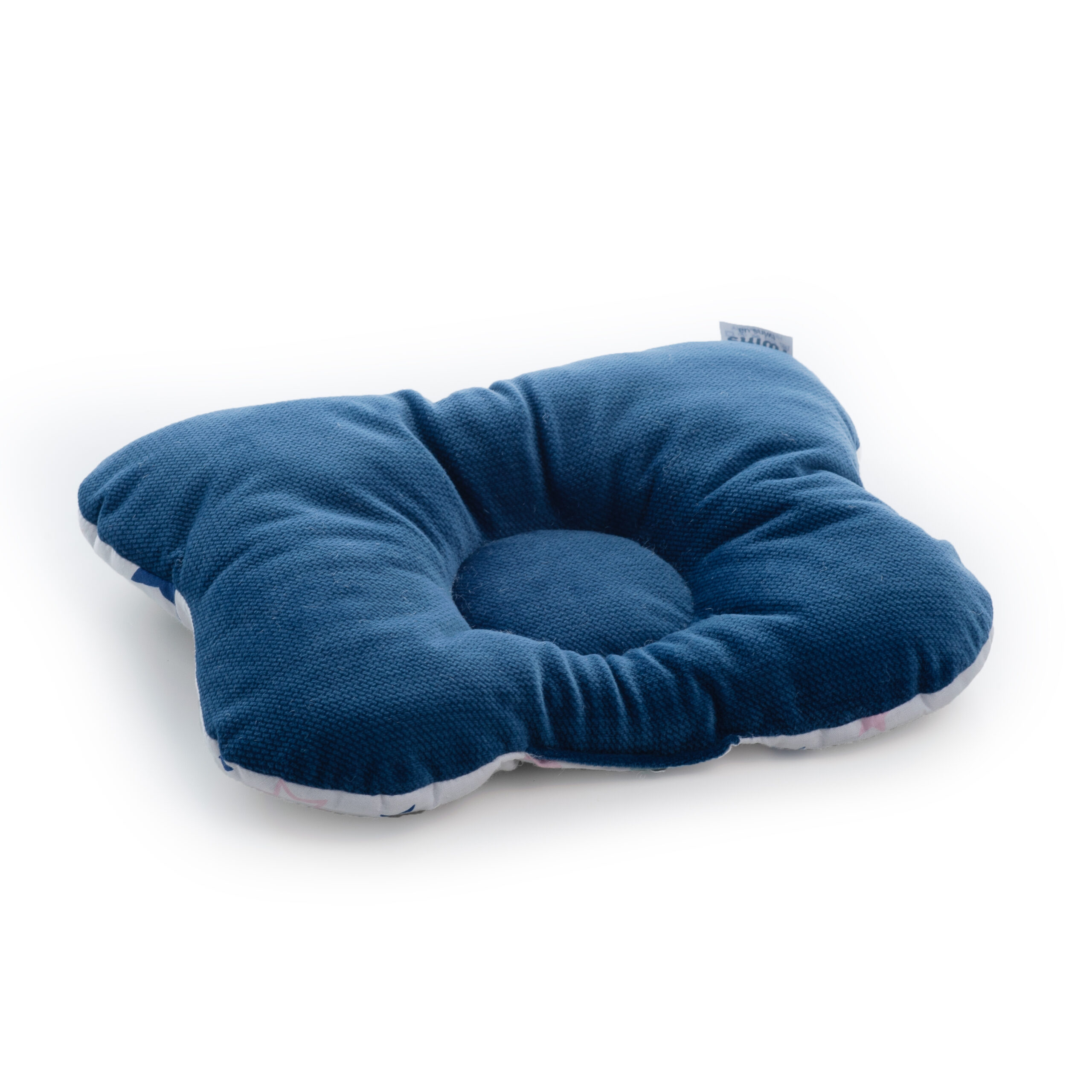 Благодаря специальной анатомической форме с углублением в центре и мягкими боковыми бортиками, подушка помогает правильно фиксировать голову ребенка, уменьшает нагрузку на шейный отдел и предупреждает возможные деформации.