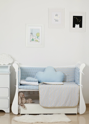 Комплект состоит из 6-ти элементов, которые станут всем необходимым для крепкого и здорового сна вашего малыша. Вам не придется покупать дополнительно никаких аксессуаров, ведь мы заранее позаботились о полной комплектации набора.