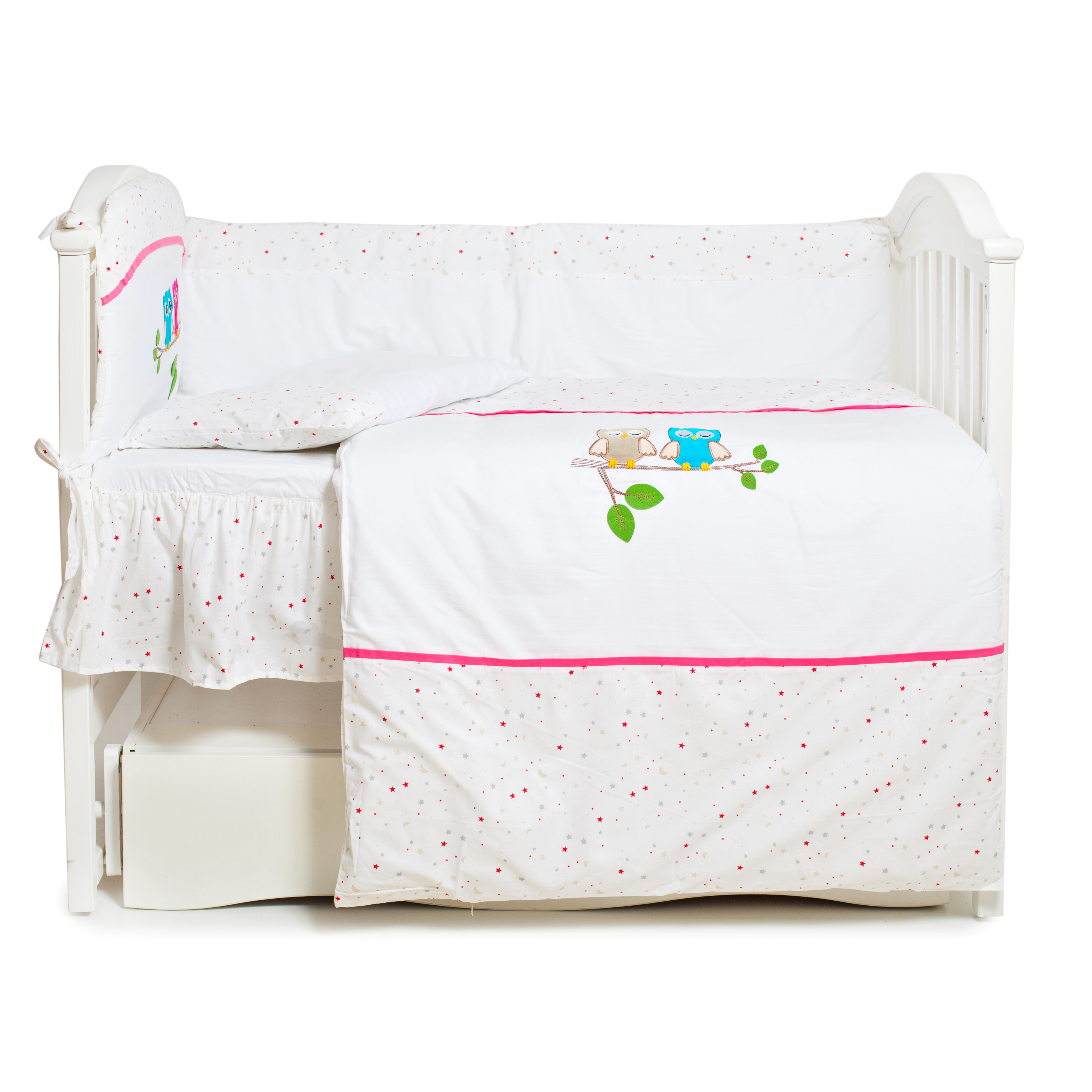 Twins Evolution СОВА - это постельное белье имеет высочайшее качество и тщательно продуманный дизайн - совушки в сочетании с нежными и светлыми цветами подарят вашему малышу нежный и спокойный сон. Постель сделана из сатина, мягкого и приятного на ощупь. Она прекрасно пропускает воздух и сохраняет тепло, поэтому в своей кроватке Вашему ребенку будет уютно и комфортно.