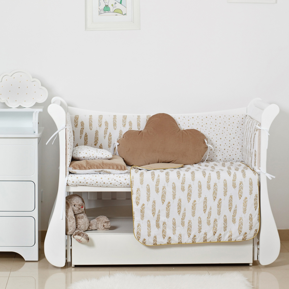 Комплект состоит из 6-ти элементов, которые станут всем необходимым для крепкого и здорового сна вашего малыша. Вам не придется покупать дополнительно никаких аксессуаров, ведь мы заранее позаботились о полной комплектации набора. И не только о ней. Как и вся постель от Twins, этот комплект совершенно безопасен для детской кожи с первых дней жизни, ведь мы используем только 100% хлопок. Все наполнители гипоаллергенны, а это значит, что вы можете быть спокойными по поводу аллергических реакций.