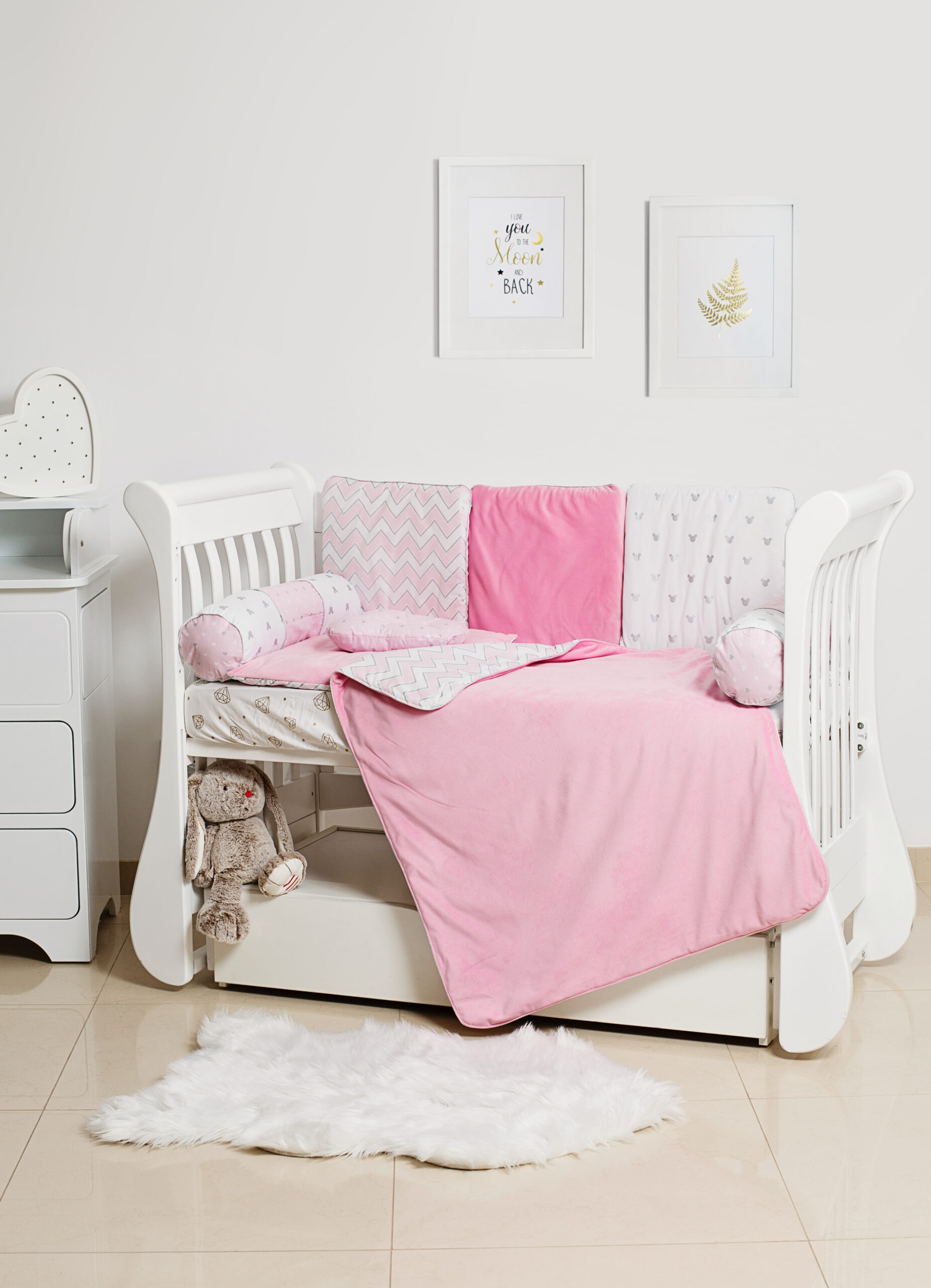 Комплект состоит из 6-ти элементов, которые станут всем необходимым для крепкого и здорового сна вашего малыша. Вам не придется покупать дополнительно никаких аксессуаров, ведь мы заранее позаботились о полной комплектации набора. И не только о ней. Как и вся постель от Twins, этот комплект совершенно безопасен для детской кожи с первых дней жизни, ведь мы используем только 100% хлопок. Все наполнители гипоаллергенны, а это значит, что вы можете быть спокойными по поводу аллергических реакций.
