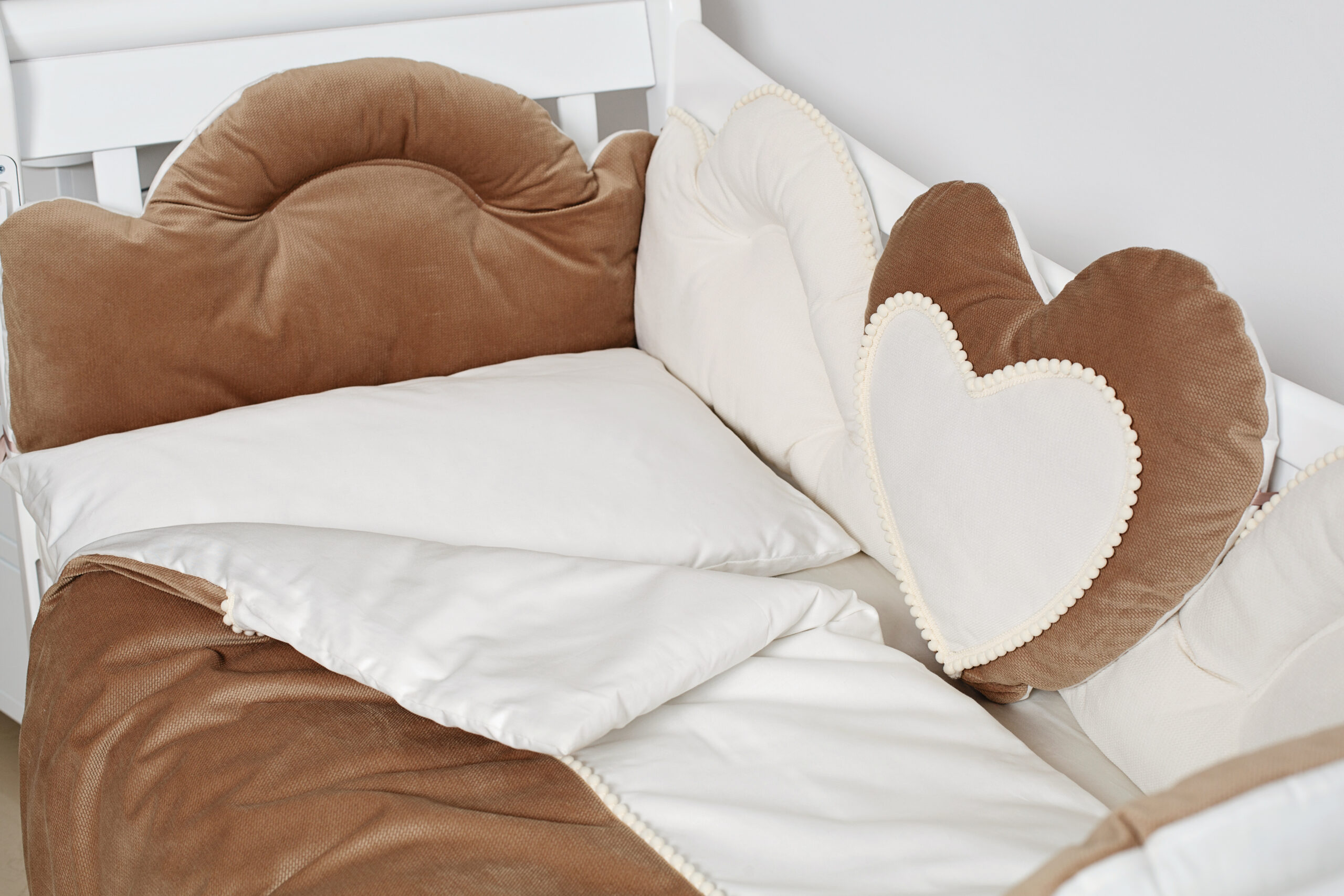 Время меняется, а вместе с ним - и потребности родителей. Современные мамы и папы хотят, чтобы детские товары были не только практичными и безопасными, но и стильными. И компании Twins всегда есть что предложить по требованию наших самых требовательных потребителей. С этой целью мы создали постельный комплект Twins Romantic Heart, который сочетает многолетние ценности бренда Twins и новые требования молодых родителей к эстетической составляющей детского постельного белья. Этот набор прекрасно подходит и для холодной и для теплого времени года. Комплект состоит из 6-ти элементов, которые станут всем необходимым для крепкого и здорового сна вашего малыша. Вам не придется покупать дополнительно никаких аксессуаров, ведь мы заранее позаботились о полном комплектацию набора. И не только о ней. Как и вся постель от Twins, этот комплект абсолютно безопасен для детской кожи с первых дней жизни, ведь мы используем только 100% хлопок. Все наполнители гипоаллергенны, а это значит, что вы можете быть спокойными по поводу аллергических реакций.