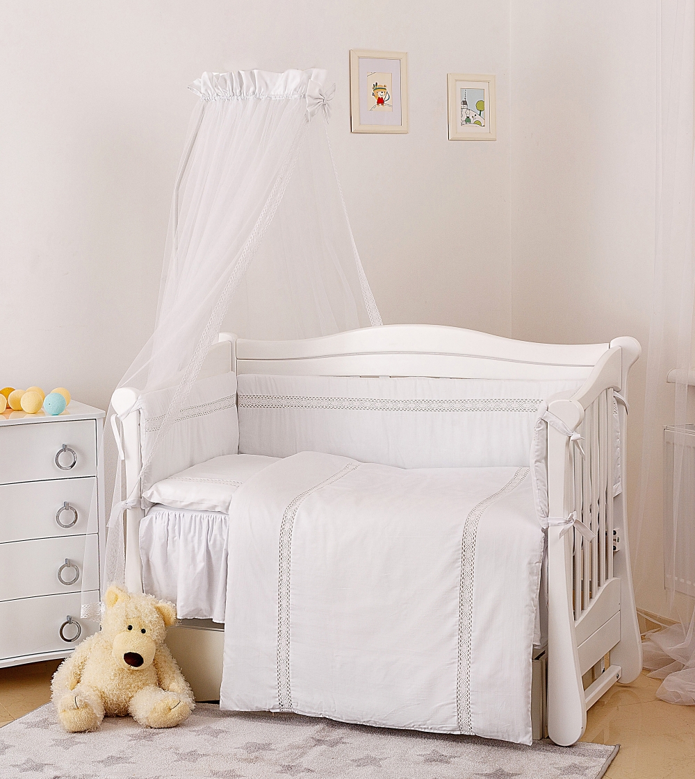 Комплект постельного белья Twins Magic sleep Ajour М-006 состоит из 7-и предметов. Постель выполнена в лаконичном стиле и украшена нежным кружевом. Если Вы отдаете предпочтение спокойному дизайну детской кроватки, который впишется в любой интерьер детской комнаты или вашей спальни, то верный выбор - Magic sleep Ajour. Идеально подходит для кроватки новорожденного размером 120 × 60 см. Выполняет декоративную и защитную функцию. Постельные комплекты изготавливаются из высококачественного 100% хлопка плотностью -135 гр / м 2. Раздельный бампер состоит из 3-х частей и загораживает малыша от ударов, сквозняков. Им можно полностью заслонить малыша по периметру кроватки или только с одной или двух сторон, по желанию.