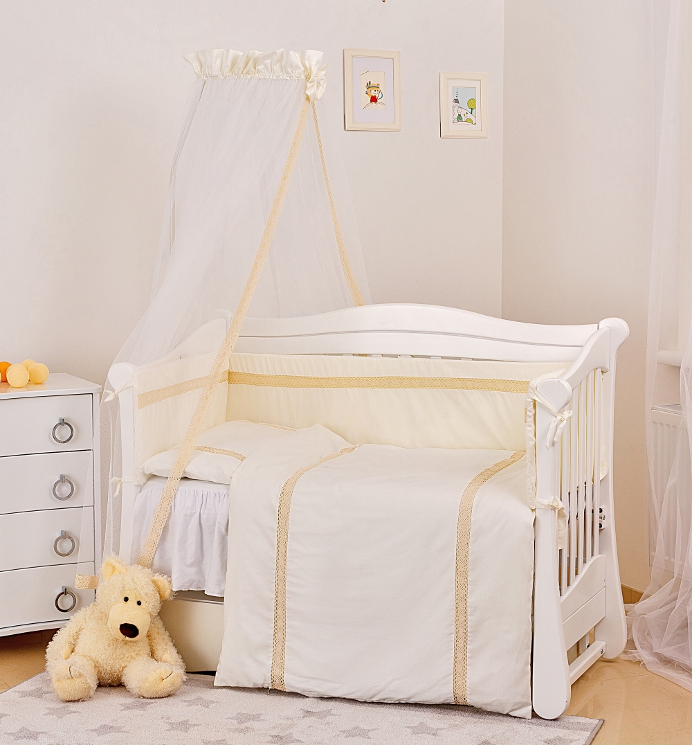 Комплект постельного белья Twins Magic sleep Ajour М-007 состоит из 7-и предметов. Постель выполнена в лаконичном стиле и украшена нежным кружевом. Если Вы отдаете предпочтение спокойному дизайну детской кроватки, который впишется в любой интерьер детской комнаты или вашей спальни, то верный выбор - Magic sleep Ajour. Идеально подходит для кроватки новорожденного размером 120 × 60 см. Выполняет декоративную и защитную функцию. Постельные комплекты изготавливаются из высококачественного 100% хлопка плотностью -135 гр / м 2. Раздельный бампер состоит из 3-х частей и загораживает малыша от ударов, сквозняков. Им можно полностью заслонить малыша по периметру кроватки или только с одной или двух сторон, по желанию.