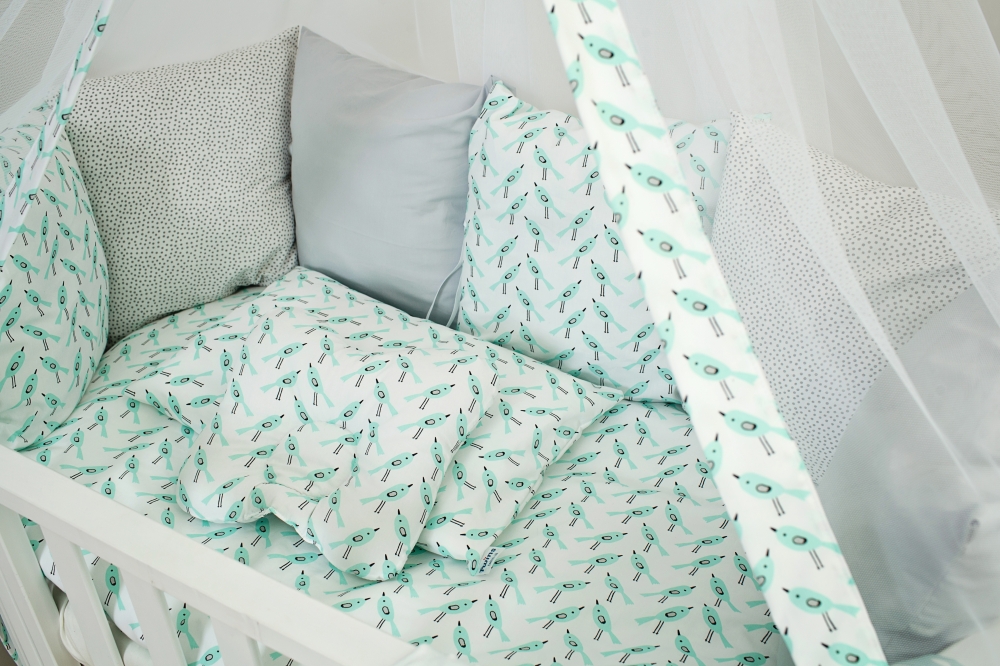 Постель Twins Dolce Птички мягкая и приятная на ощупь. Ткань, из которой изготовлен комплект, - прочная и, соответственно, хорошо противостоит износу – не лохматится, не выцветает, не стирается при стирке.Вы будете довольны качеством пошива и фурнитуры, которую мы выбрали (молнии, резинки и тому подобное). А еще - она очень нежная к коже малыша. В теплую погоду - майне приятной прохладой, когда за окном идет снег - тепло примет в свои объятия. Обращаем ваше внимание на то, что в комплекте есть ортопедическая подушка, которая идеально приспособлена для того, чтобы обеспечить крепкий, спокойный и здоровый сон младенца с первых дней. Особенно, если на то есть особое предписание врача.
