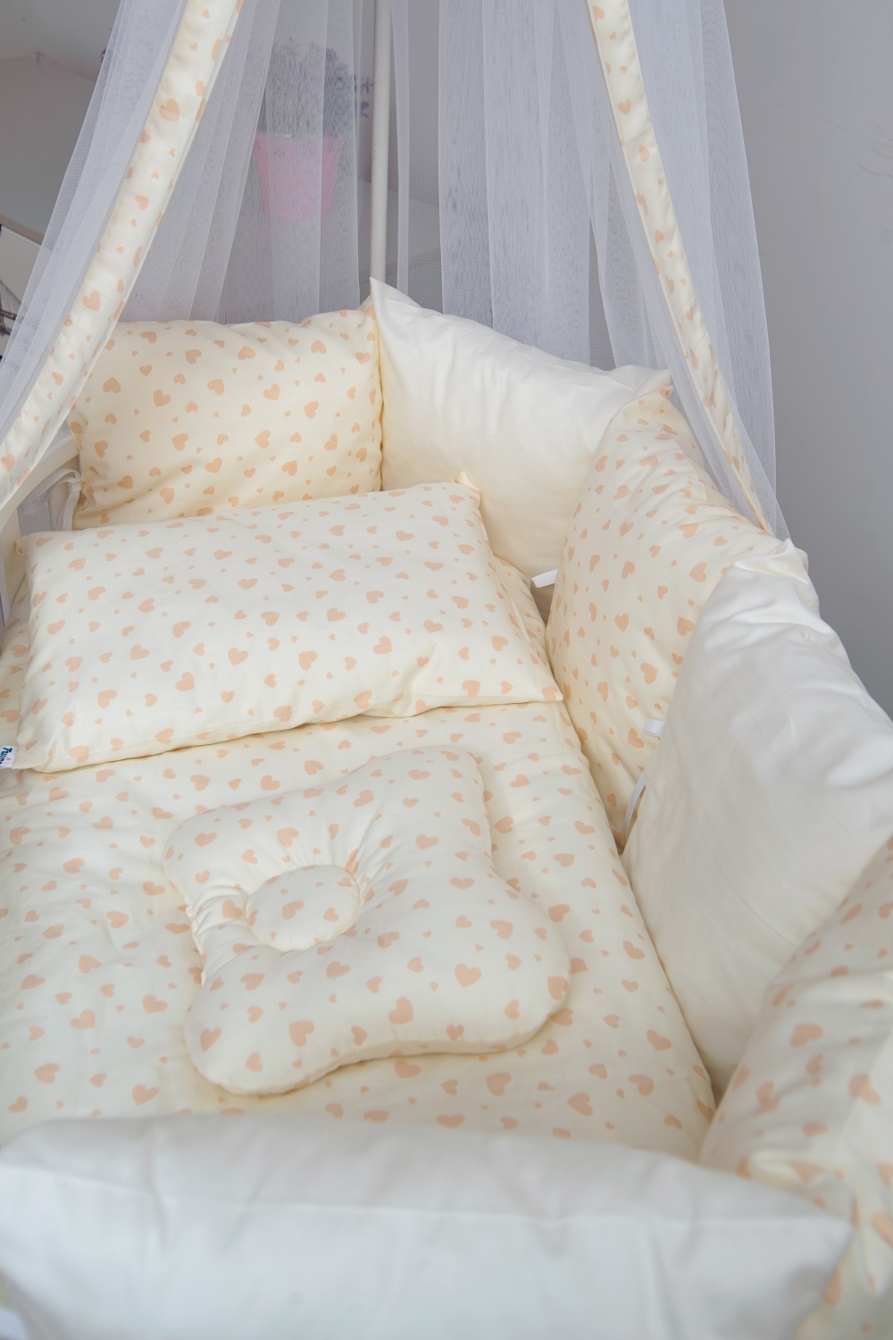Постель Twins Dolce Сердечки очень мягкая и приятная на ощупь. Ткань, из которой изготовлен комплект, - прочная и, соответственно, хорошо противостоит износу – не лохматится, не выцветает, не стирается при стирке. Вы будете довольны качеством пошива и фурнитуры, которую мы выбрали (молнии, резинки и тому подобное). А еще - она очень нежная к коже малыша. Обращаем ваше внимание на то, что в комплекте есть ортопедическая подушка, которая идеально приспособлена для того, чтобы обеспечить крепкий, спокойный и здоровый сон младенца с первых дней. Особенно, если на то есть особое предписание врача.