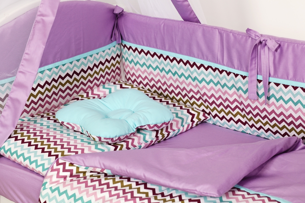 Бортики наполнены синтепоном и оснащены съемными чехлами на молнии, что значительно облегчает уход.