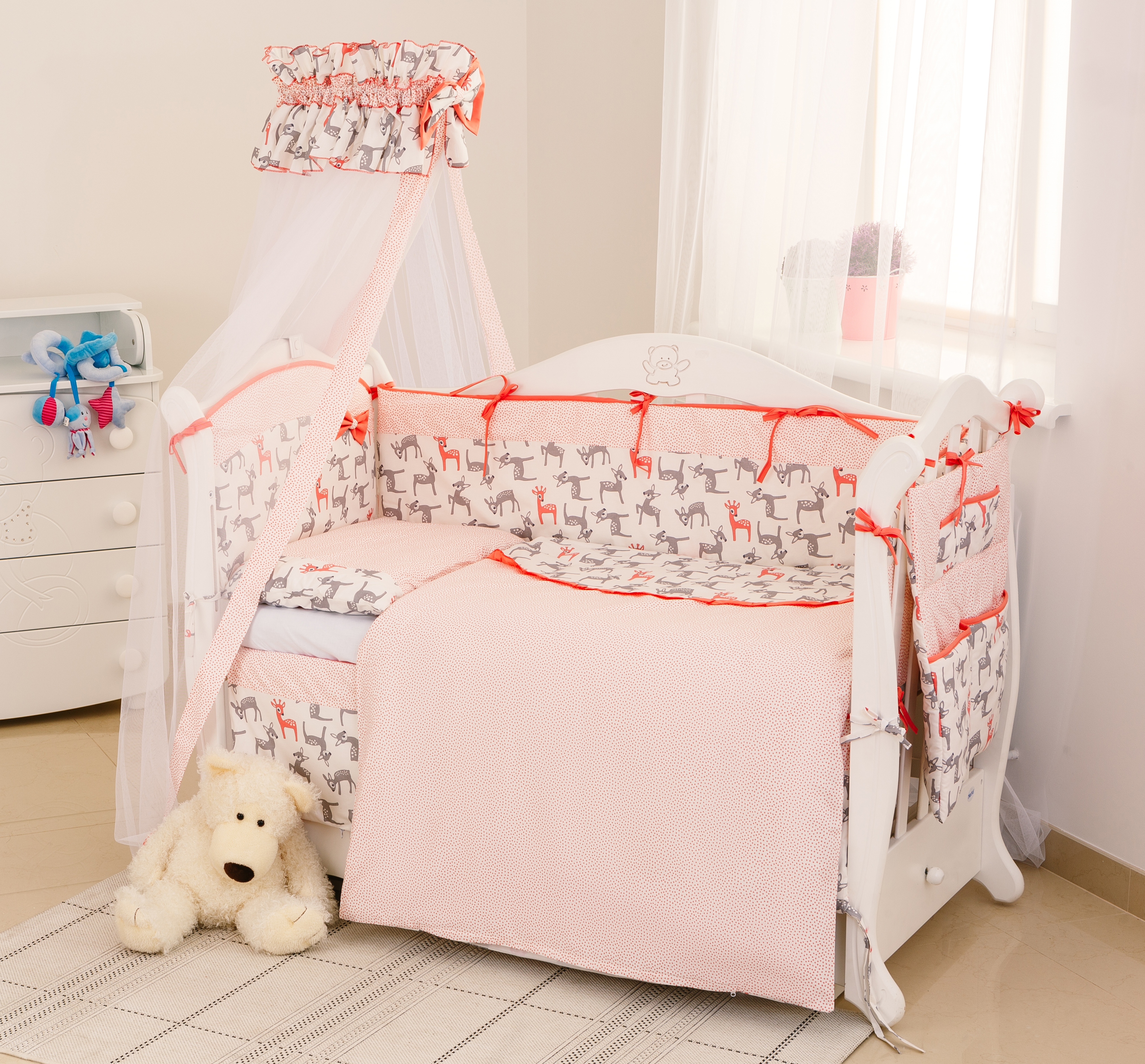 Серия детского постельного белья Premium - изящная новинка от Twins, создана с учетом требований современных родителей, исполнена в выдержанном итальянском стиле. Чтобы обеспечить малышу спокойный и здоровый сон, использована исключительно по качеству и мягкости 100% хлопок премиум класса, проста в использовании, стирке и глажении, что обеспечивает сохранение первоначальной формы. Twins Premium - это гипоаллергенная ткань из хлопка премиум класса, наполнитель, безопасная конструкция и удобное использование. В комплект входит все необходимое. К тому же, все элементы гармонично подобраны по цветовой гамме. Балдахин с узором чудесно гармонирует к комплекту, также имеет защитную функцию от насекомых, которые могут залетать в детскую комнату. В навесном кармане удобно хранить необходимые вещички, которые могут понадобиться ребенку ночью. Двусторонний бампер защищает от прямых сквозняков, ударов во время сна и игр в кроватке. Три завязки вдоль бампера дают возможность привязывать игрушки музыкального мобиля, дополняя при этом комплект яркими элементами и развлекая малыша. Бампер съемный на замке.