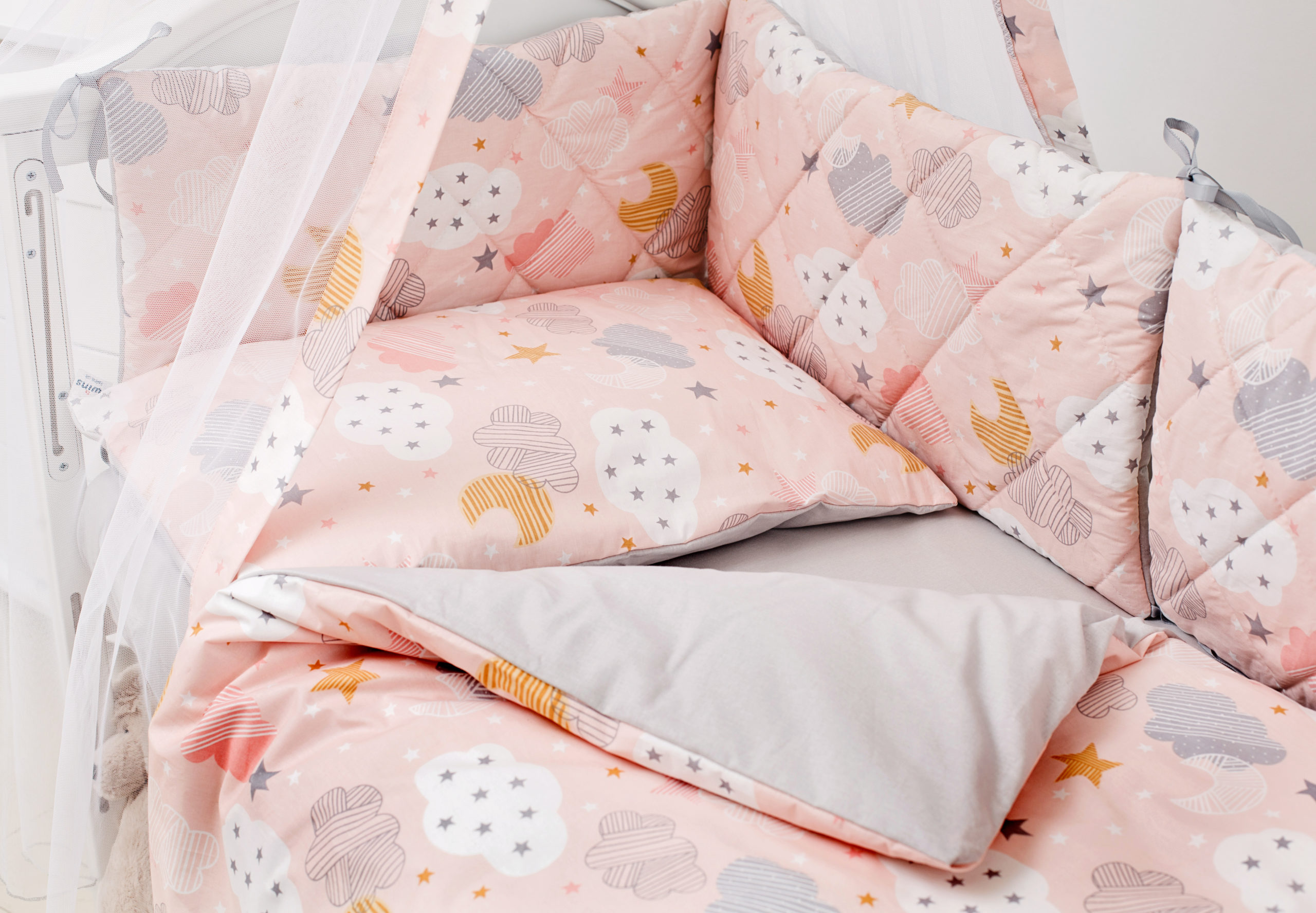 Twins Premium Glamour — это гипоаллергенная ткань и наполнитель, безопасная конструкция и удобное использование. В комплект входит все необходимое. К тому же, все элементы гармонично подобраны по цветовой гамме. Балдахин с узором чудесно гармонирует в комплект также защитную функцию от насекомых, которые могут залететь в детскую комнату.