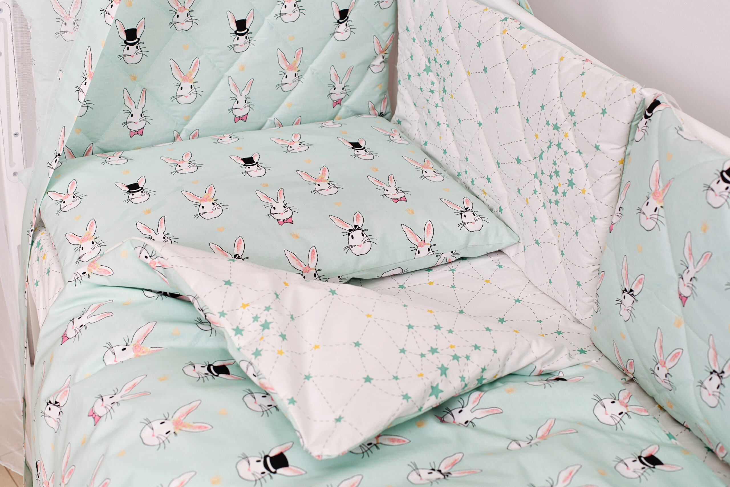 Постельный комплект 8 эл Twins Premium Glamour 4029-TG-14R, Кролики mint, мятный