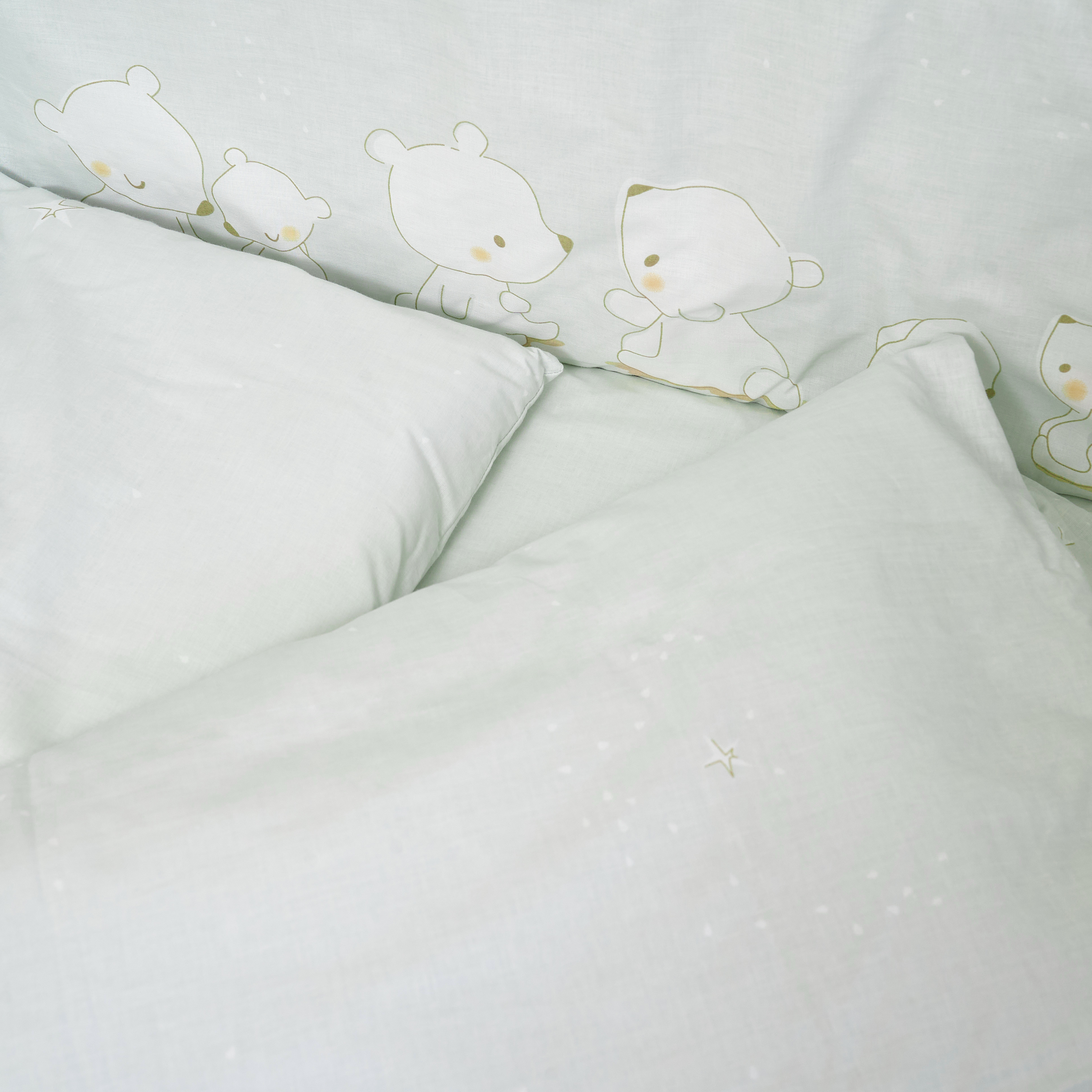Наполнители - антиаллергенный силикон в одеяле и подушке, плотный синтепон в бортиках - обеспечивают безопасность и удобство.