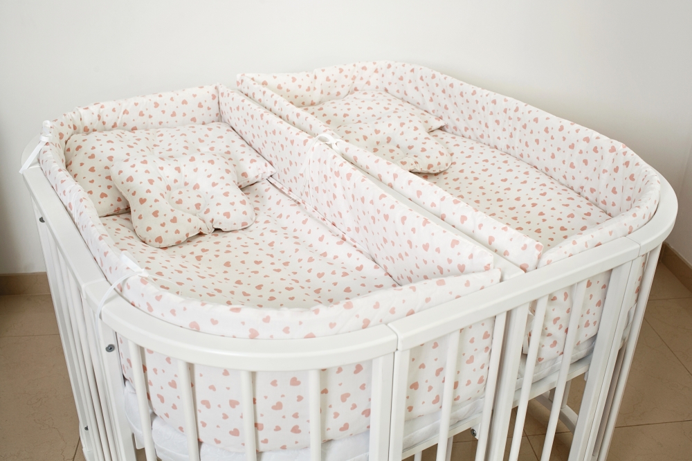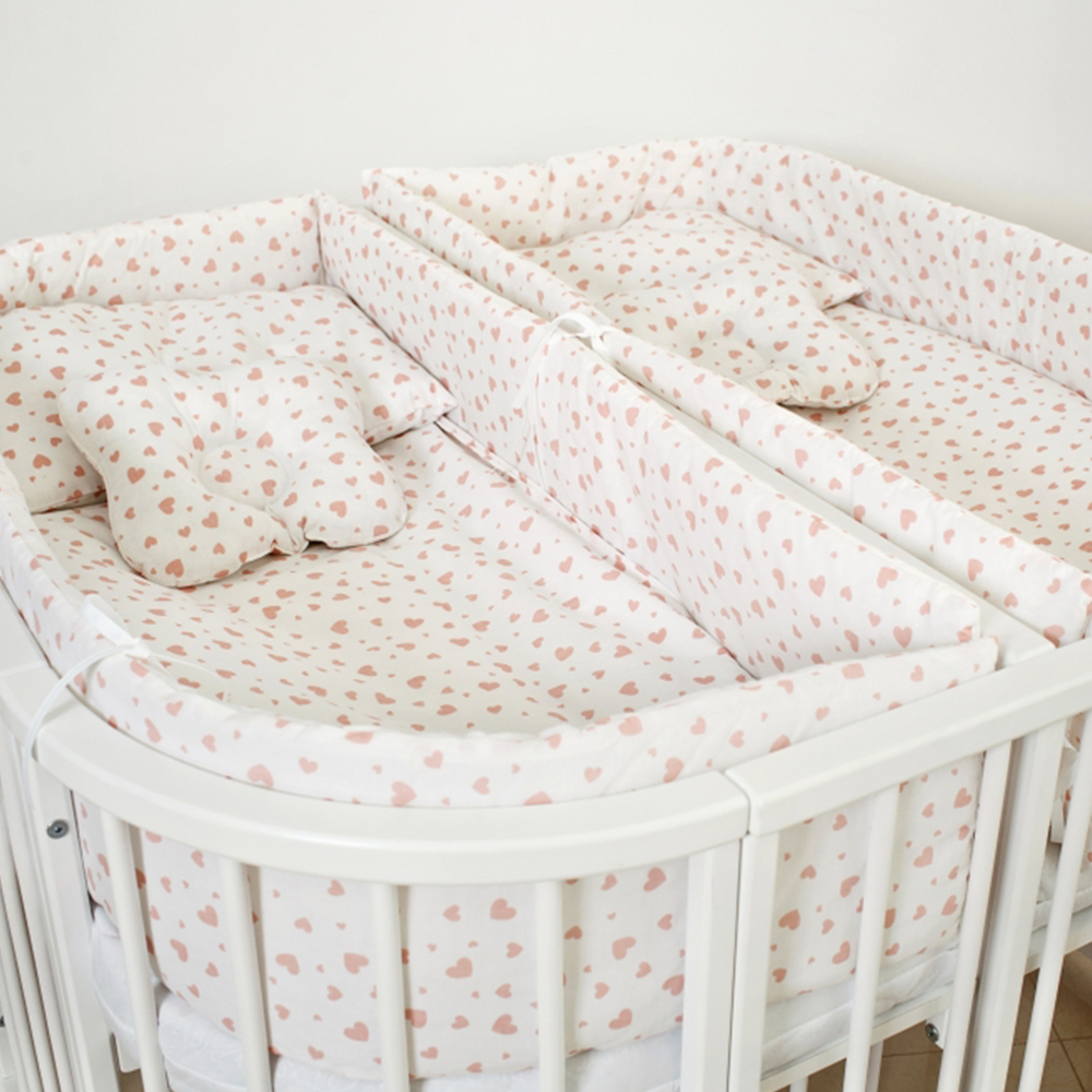 Радость материнства невозможно сравнить с любыми другими эмоциями, а стать родителями двойни ー это счастье умноженное на два. И так, всегда удваиваются и хлопоты, но все же у клиентов компании Twins их немного меньше, ведь они выбирают постель для двойни Twins Сердечки. Милый дизайн в сочетании с качественной тканью не оставит равнодушными ни мам с папами, ни малышей-двойняшек. Основа комплекта ー 100% хлопок, которая безопасна для кожи новорожденных и не провоцирует никаких аллергических реакций. А еще такая ткань не теряет формы и цвета, поэтому мамочки могут быть спокойны на протяжении многократных стирок.