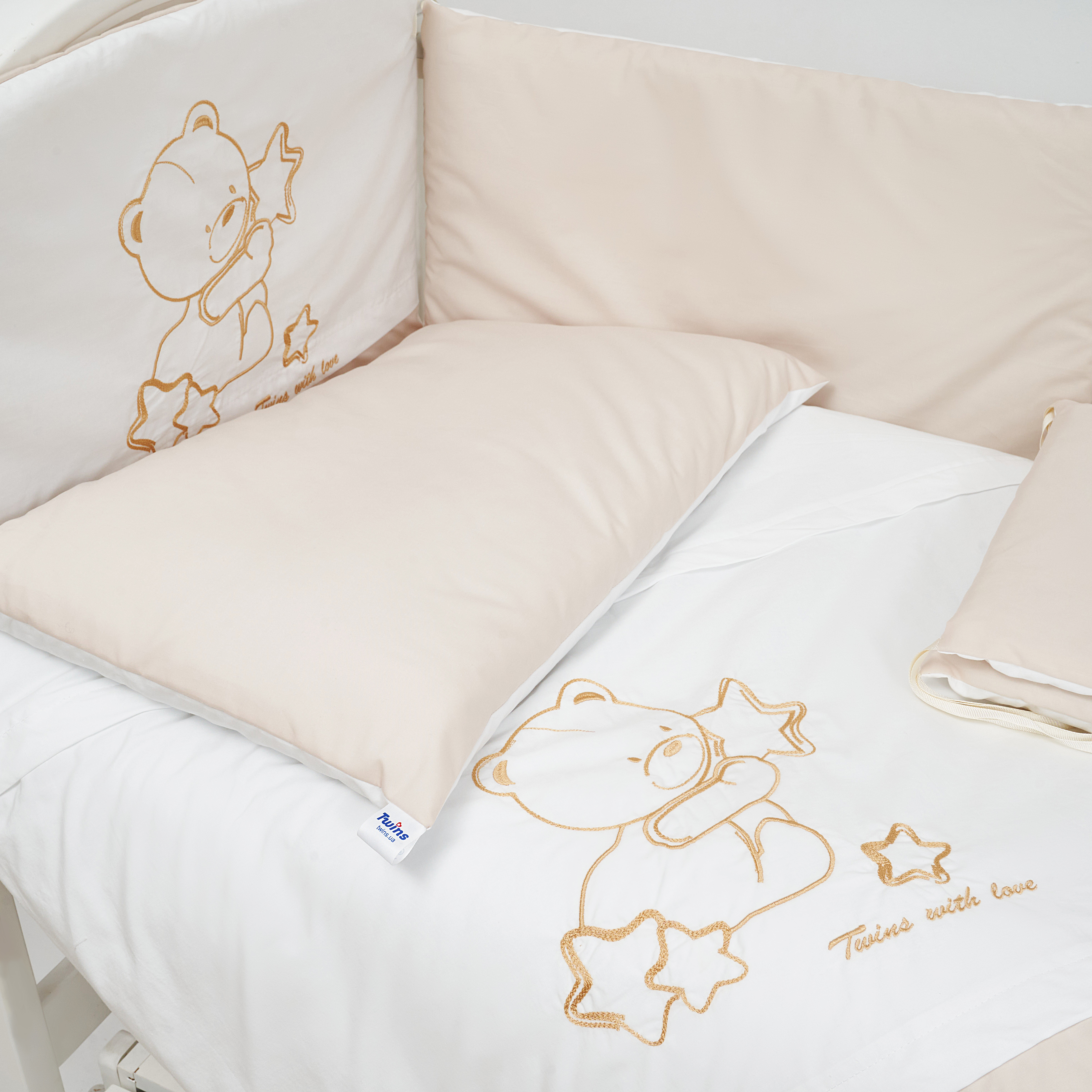 Серия детского постельного белья Dolce Loving bear - изящная и совершенная в исполнении постель от Twins, создана с учетом требований современных родителей, исполнена в выдержанном европейском стиле. Чтобы обеспечить малышу спокойный и здоровый сон, использована исключительная по качеству и мягкости 100% американский хлопок, прост в использовании, стирке и глажении, что обеспечивает сохранение первоначальной формы.